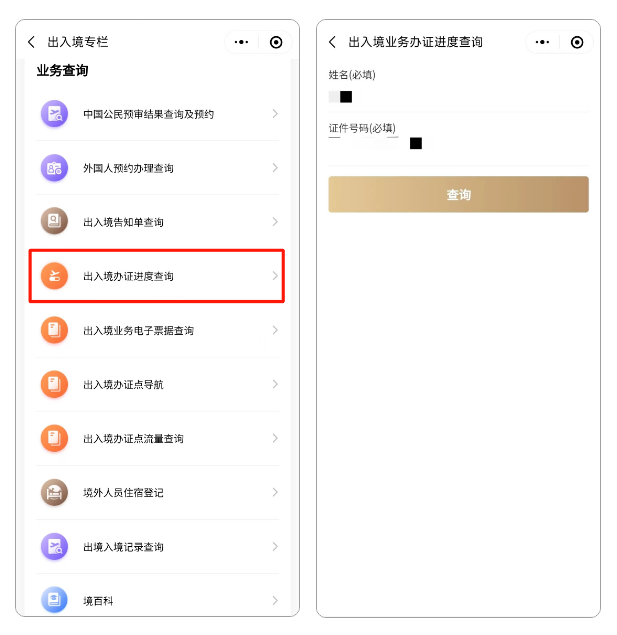 3、提交成功即进入预审阶段,可选择“查看预约结果”或在“出入境专栏”中选择“出入境业务办理查询”查询审核进度。