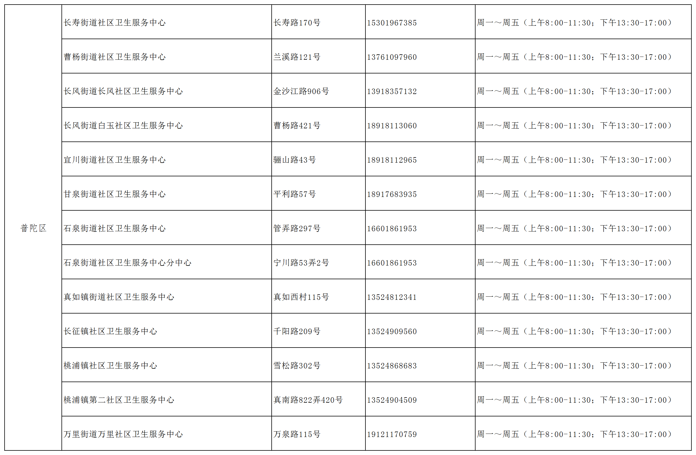 普陀区社区卫生服务中心(分中心)