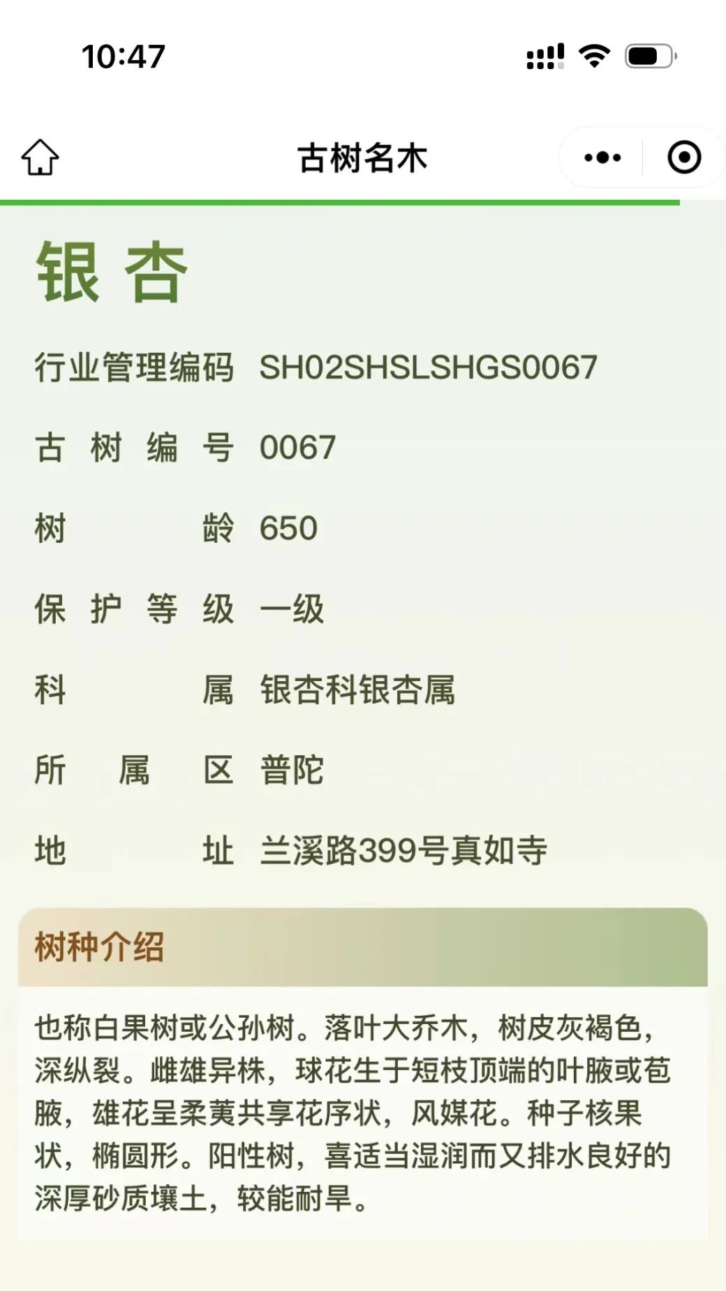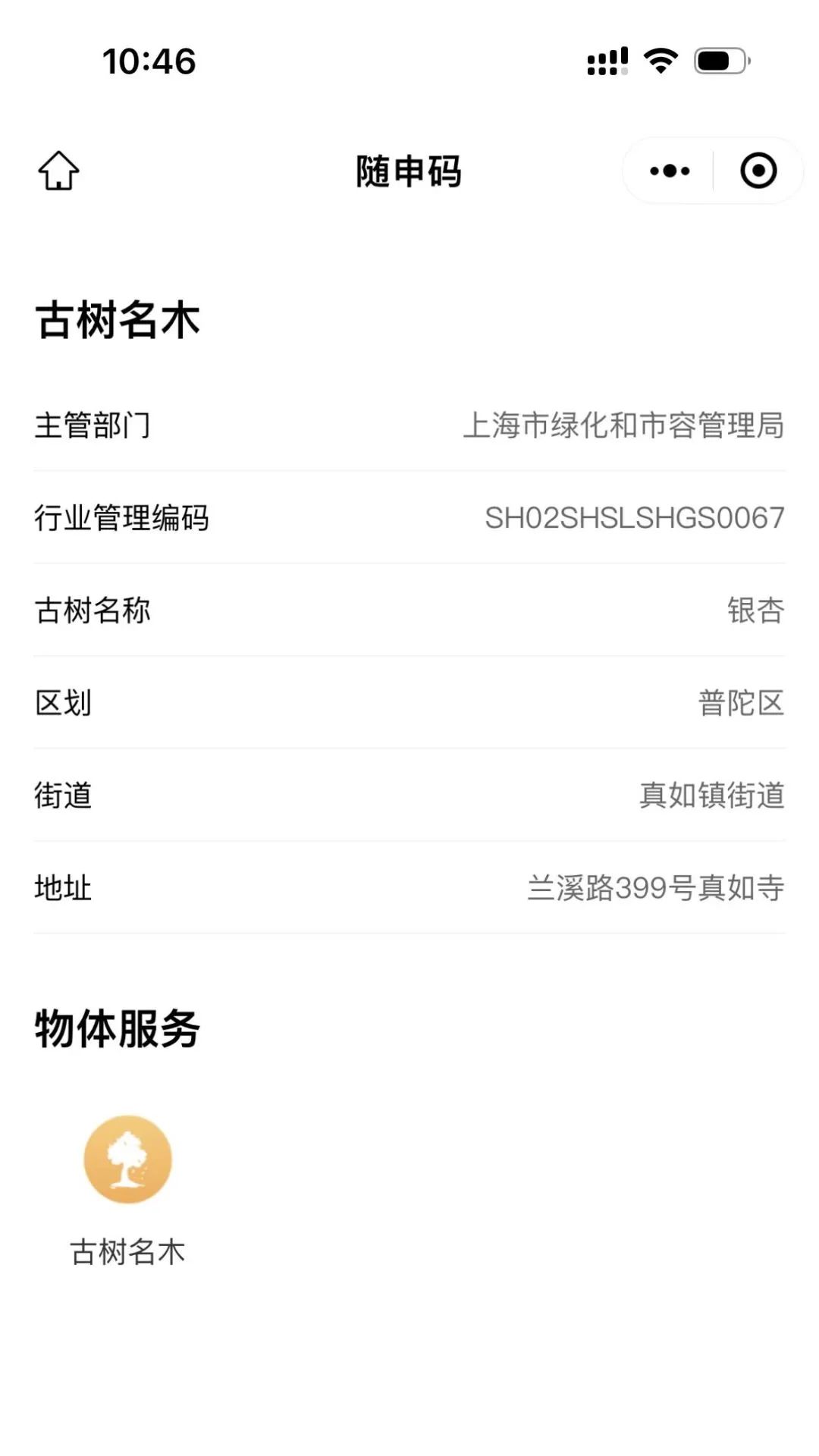 例如,扫描上方0067号古树铭牌上的“随申码”,就这样能看到它的详细信息。