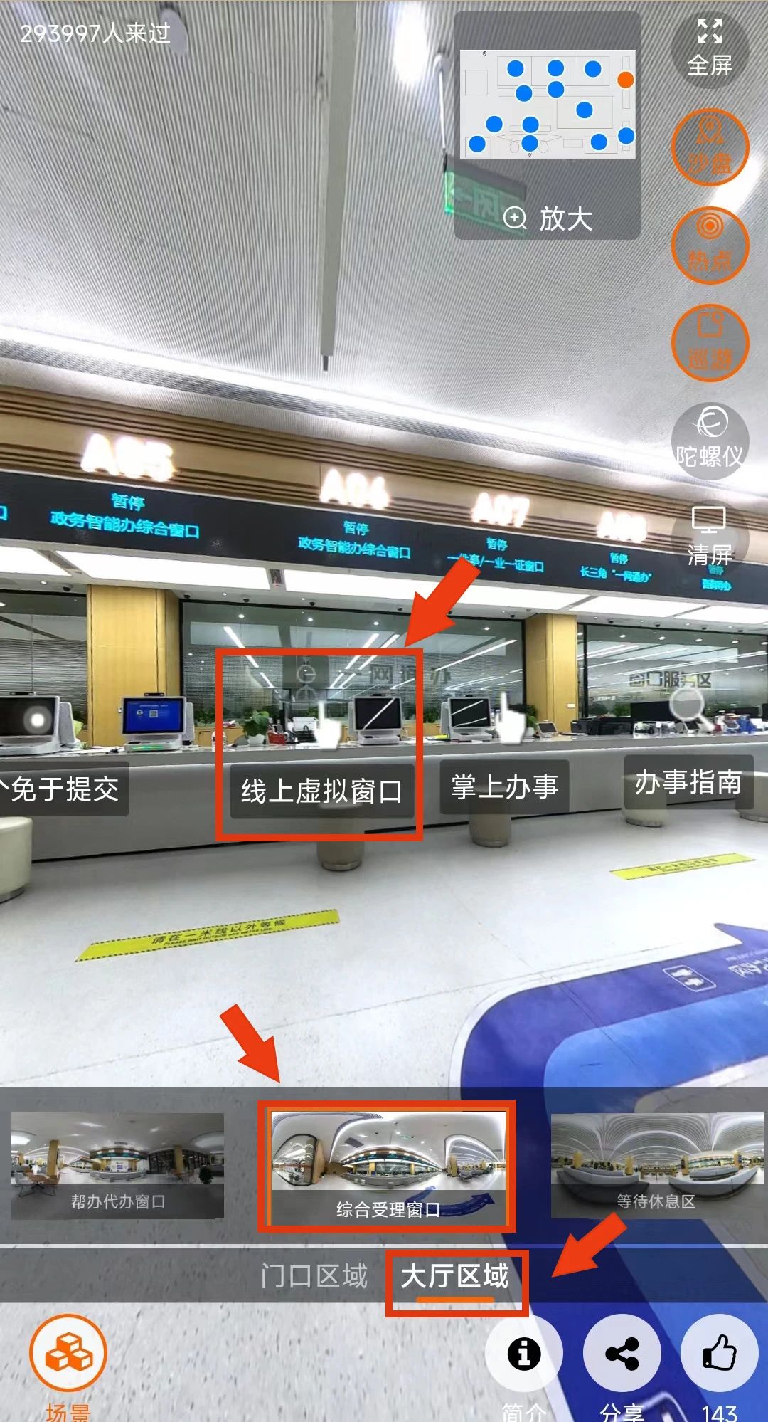 2.选择“大厅区域-综合受理窗口-线上虚拟窗口”,就可以点击进入“虚拟综合窗口”体验线上服务啦。