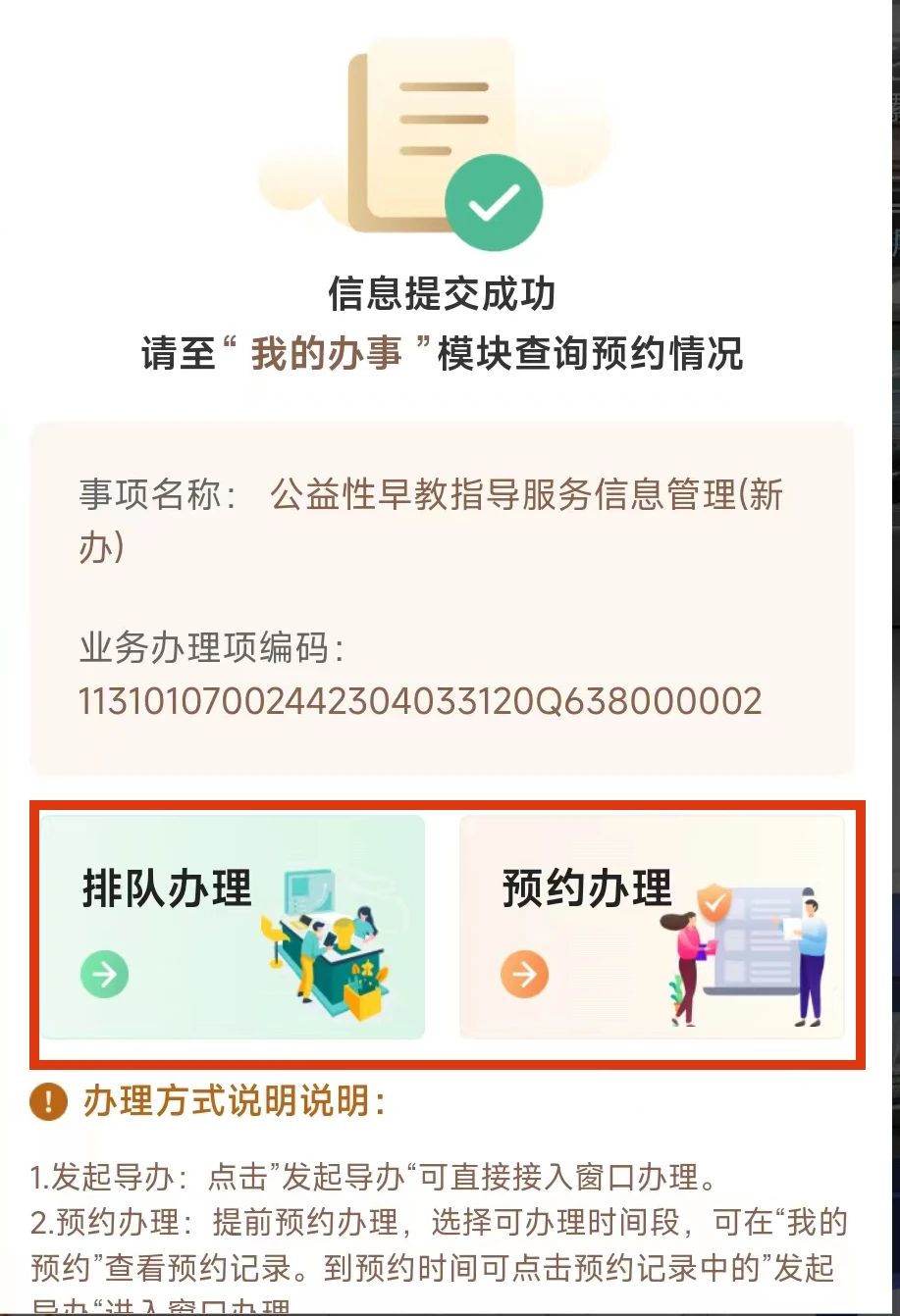 7.申请填报完成进行提交后,申请人可选择在当天进行排队办理,或者选择其他日期进行预约办理。