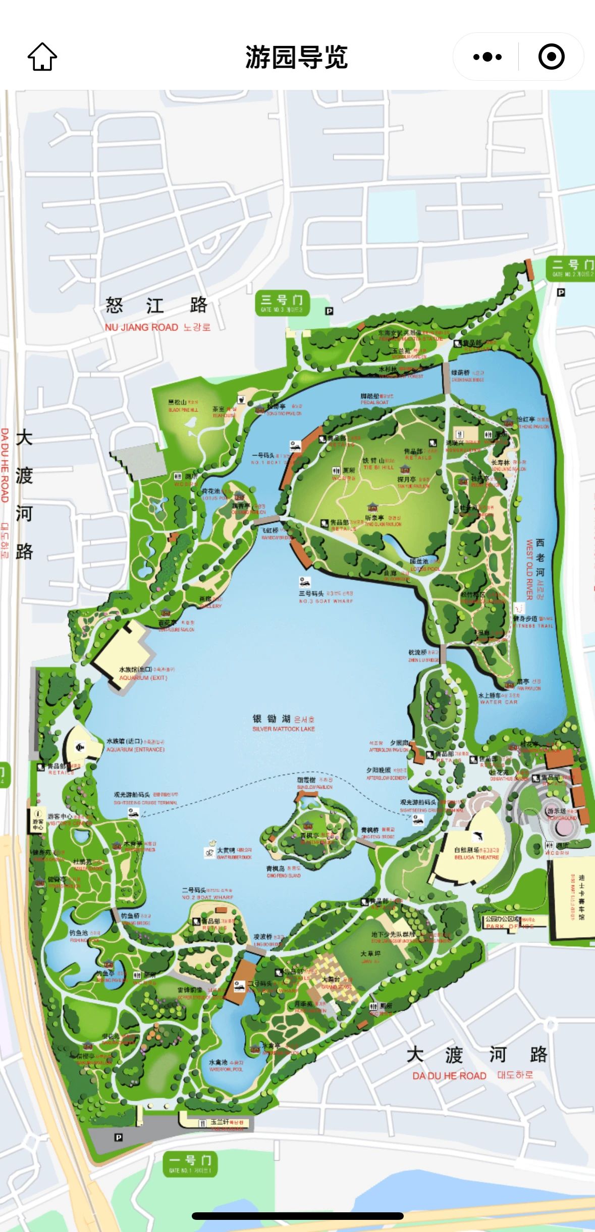 【游园导览】通过对接地图功能,用户点击游园导览服务,显示扫码人扫码时所在的位置的定位。