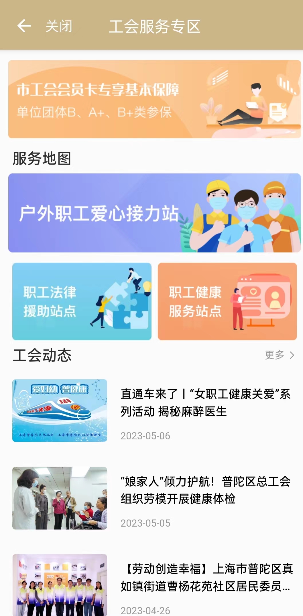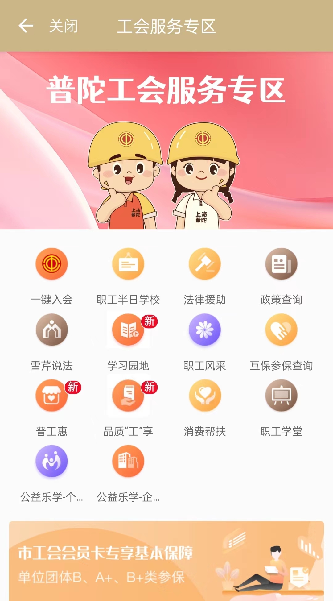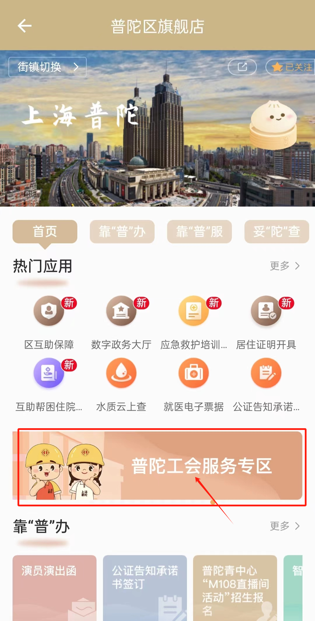 第二步:点击进入"普陀工会服务专区"