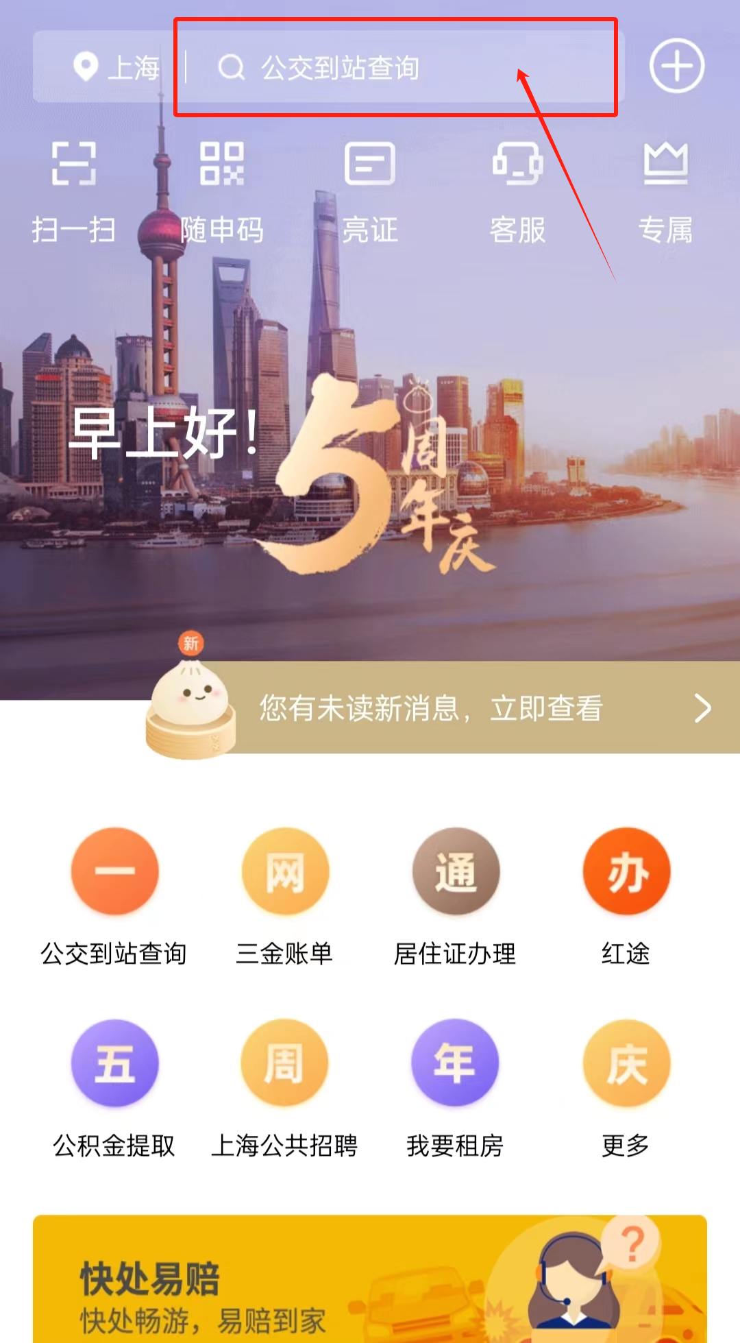 第一步:打开"随申办"APP,进入普陀旗舰店
