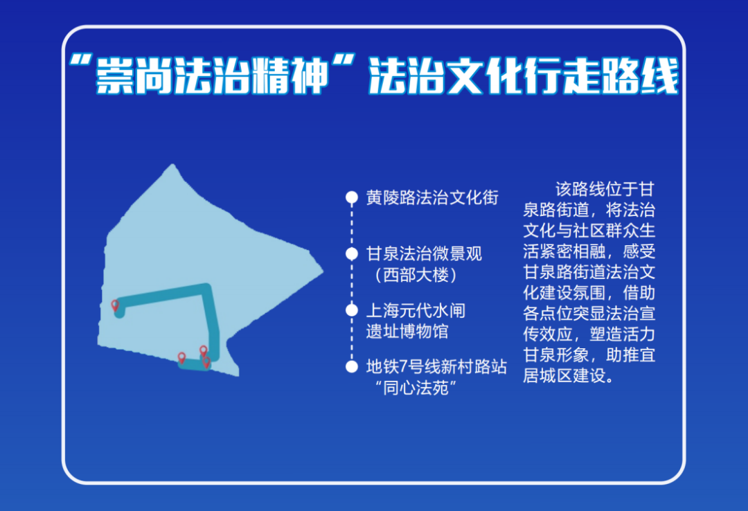 普陀区“Legal Walk”城市研游路线,是普陀融知识与乐趣于一体的法治教育路线地图。这10条线路沿途不仅串联了普陀区的历史地标和文化符号,更巧妙地将法治元素与城市风貌相融合。参与者在漫步之间,不仅能够领略到普陀的城市魅力,更能深入浅出地接触到法治的理念和实践。10条路线如同一本开放的城市教科书,让每一位漫步者在轻松的步伐中学习法律知识,感悟宪法精神,增强法治意识。