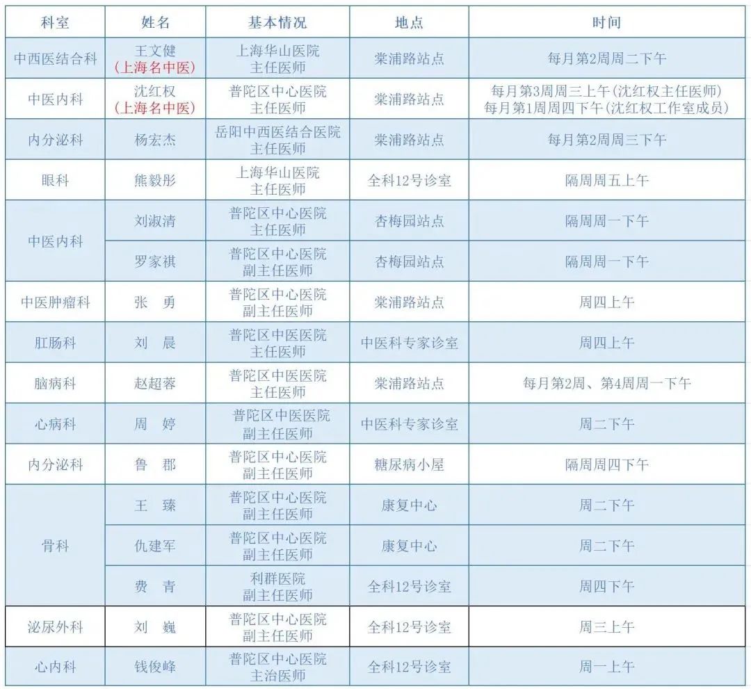 另外,这份十二月全专联合门诊专家排班表请查收~地址:普陀区曹杨社区卫生服务中心