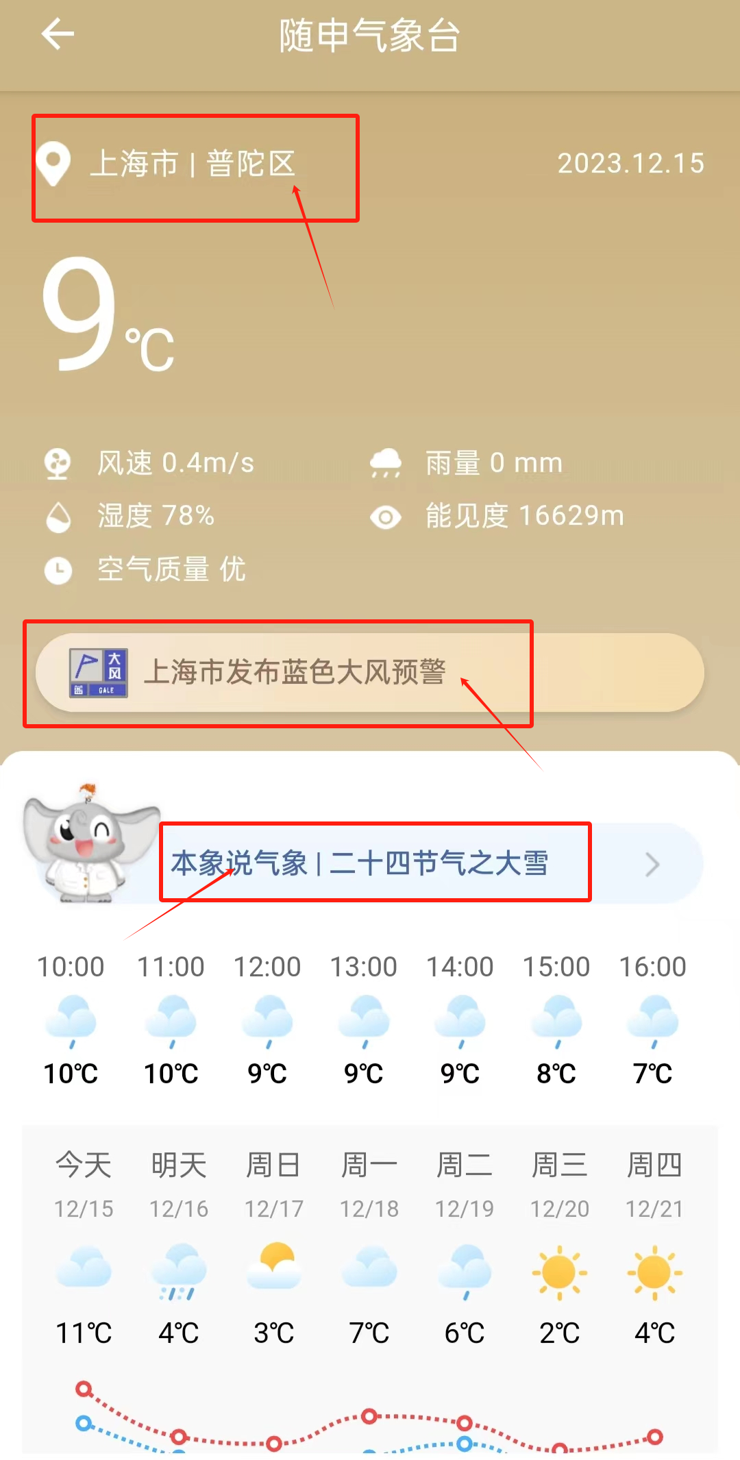 “随申气象台”来啦,一键查看普陀“实时天气”和“实时雨量” 2023年12月15日