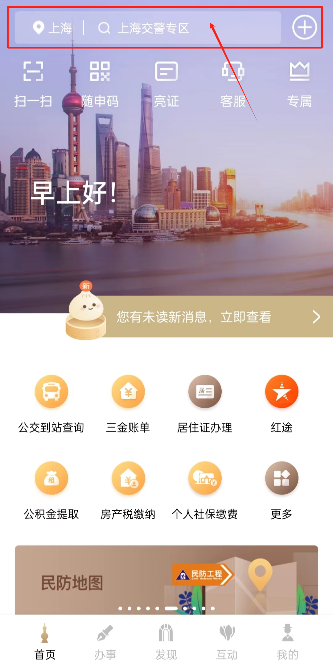第一步:打开“随申办市民云”(APP、微信小程序、支付宝小程序),首页搜索“实时雨量”并点击对应选项。