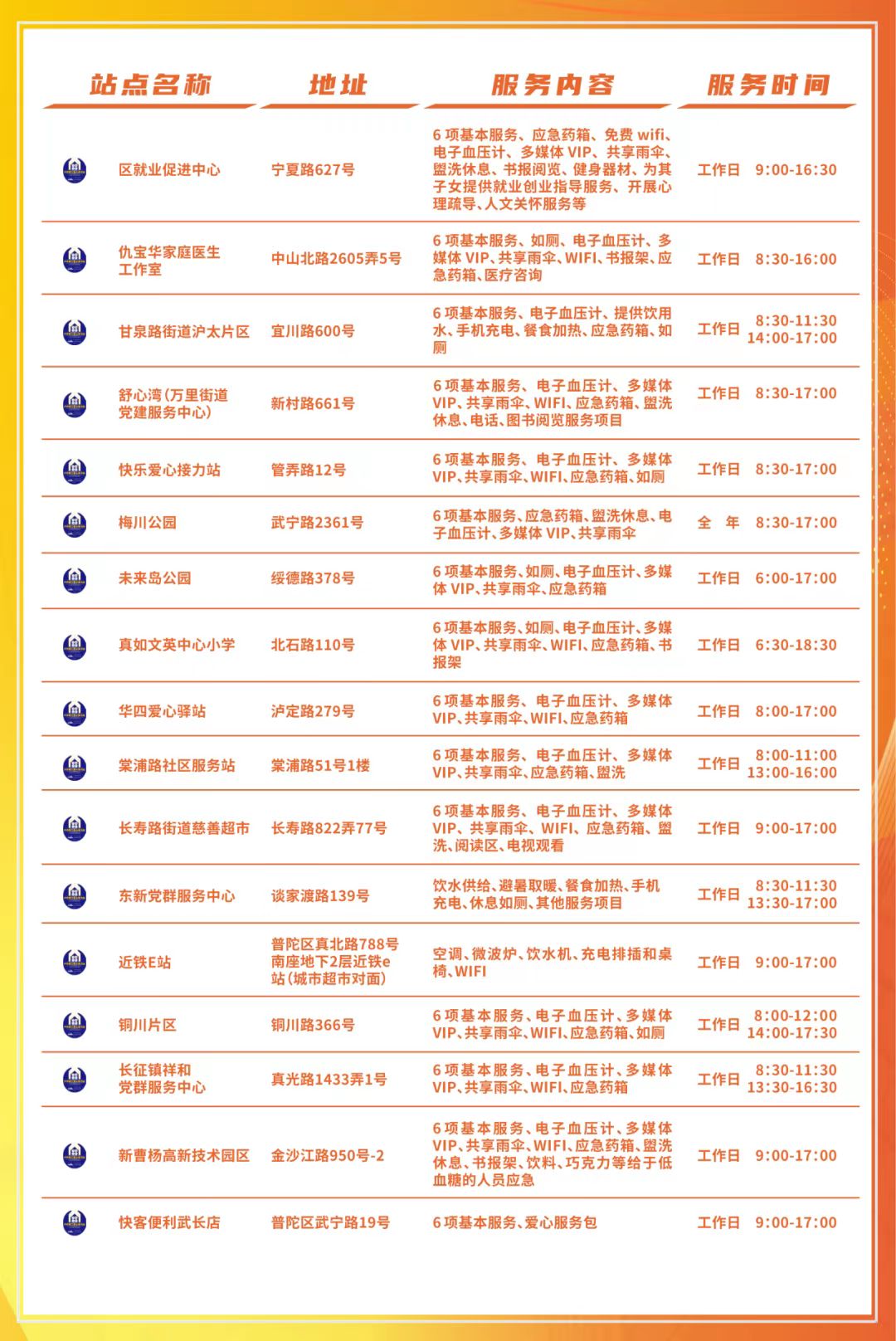 普陀区各“爱心接力站”信息汇总来啦,欢迎您来歇歇脚!