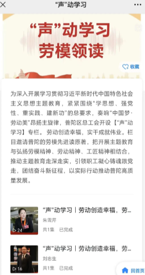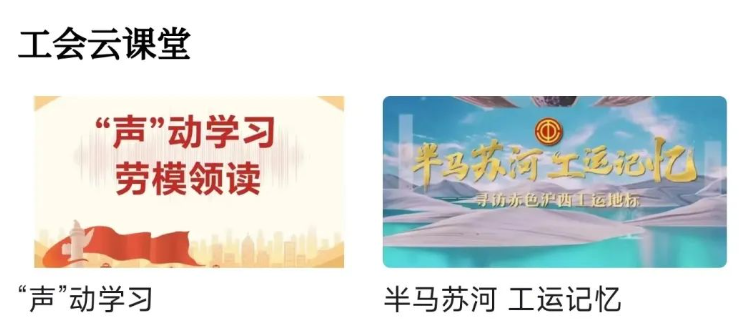 工会云课堂新设两个特色频道,分别是“'声'动学习”频道和“半马苏河、工运记忆”频道。