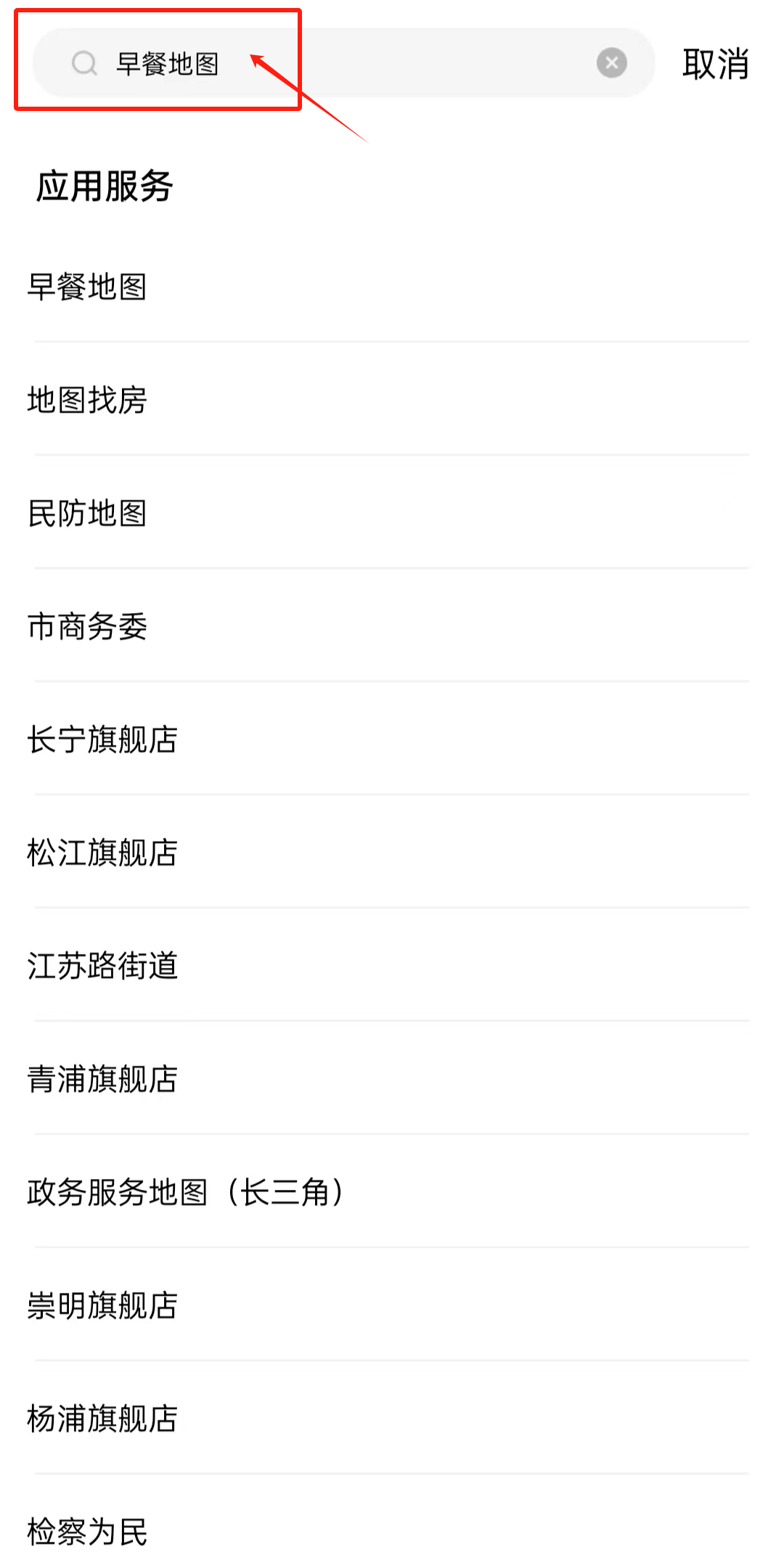 第一步:打开“随申办”(APP、微信小程序、支付宝小程序),搜索“早餐地图”