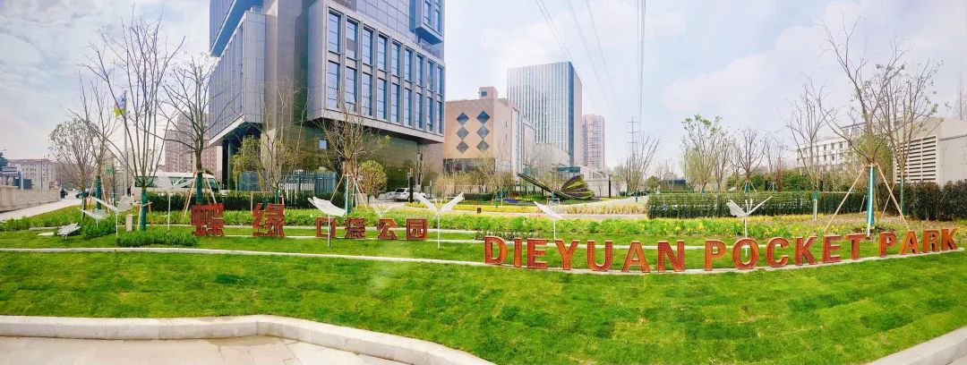 围绕“蝶缘”主题,整个口袋公园以蜜源植物为主,花丛中开放的羽扇豆,滨河步道旁的乌桕、刺槐、香橼、枣树等,一众蜜源植物囊括了蝶缘四季景观。