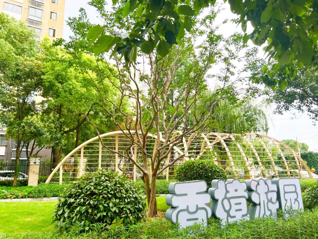 位于普陀区武威路郁李路东南角的香樟游园,保留了原有的香樟树林,增加八仙花、杜鹃、玉簪等开花地被,并在节点处增设廊架、坐凳等设施,新僻开阔活动空间和休憩场所,营造出充满动感、活力、青春的绿色花园。