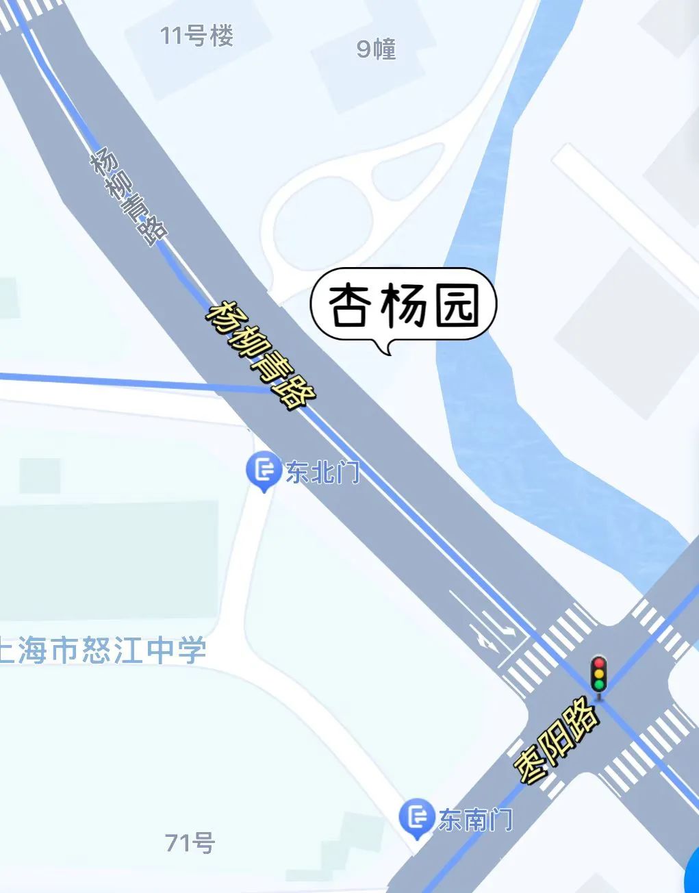 杏杨园位于普陀区曹杨新村街道,比邻曹杨环浜,西临杨柳青路,背靠曹杨三村小区,是曹杨环浜上重要的口袋公园节点。