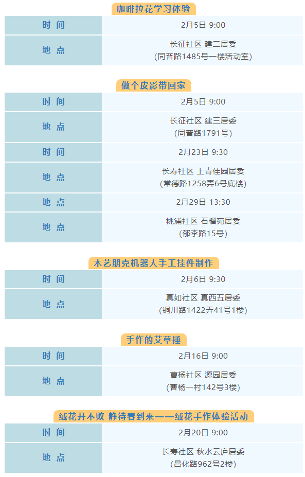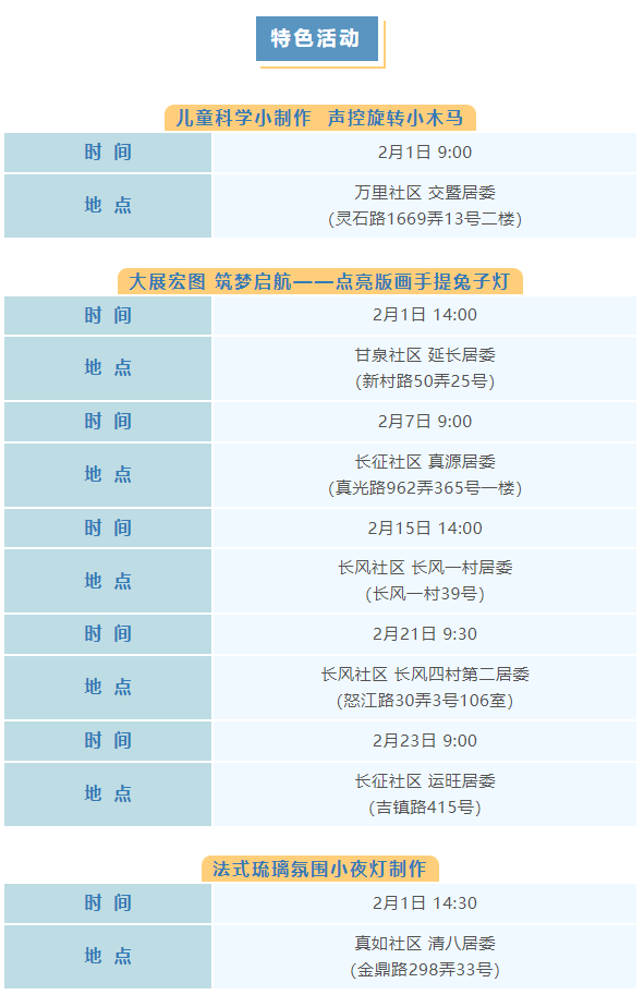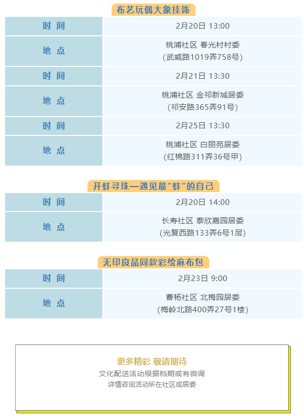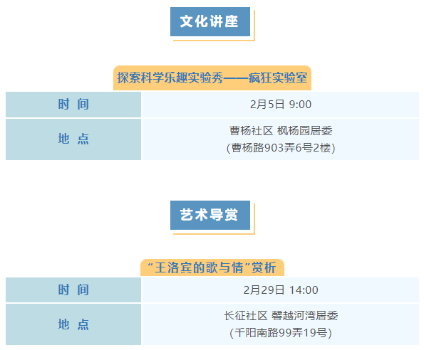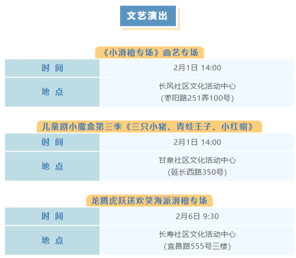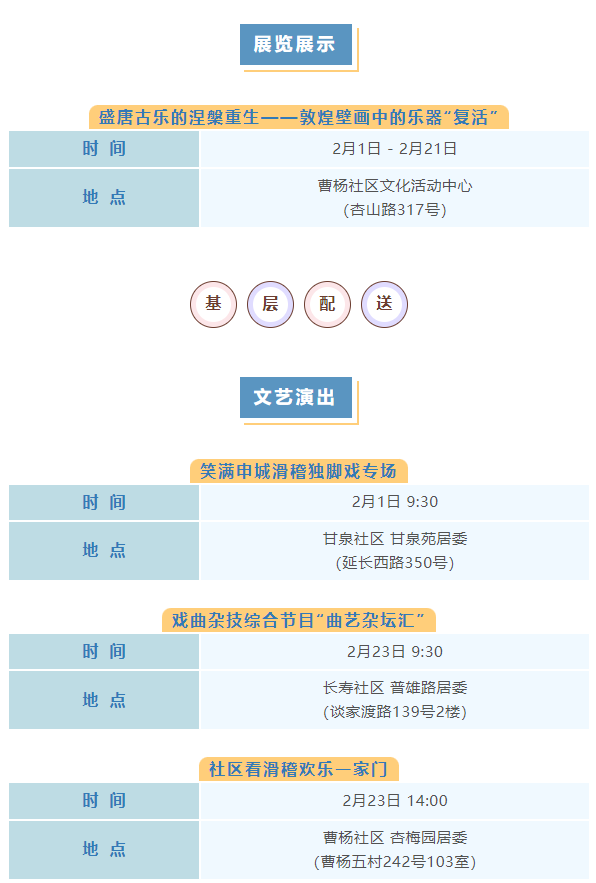普陀区2月文化配送活动(区级配送)预告来啦!
