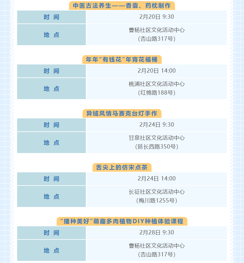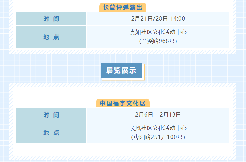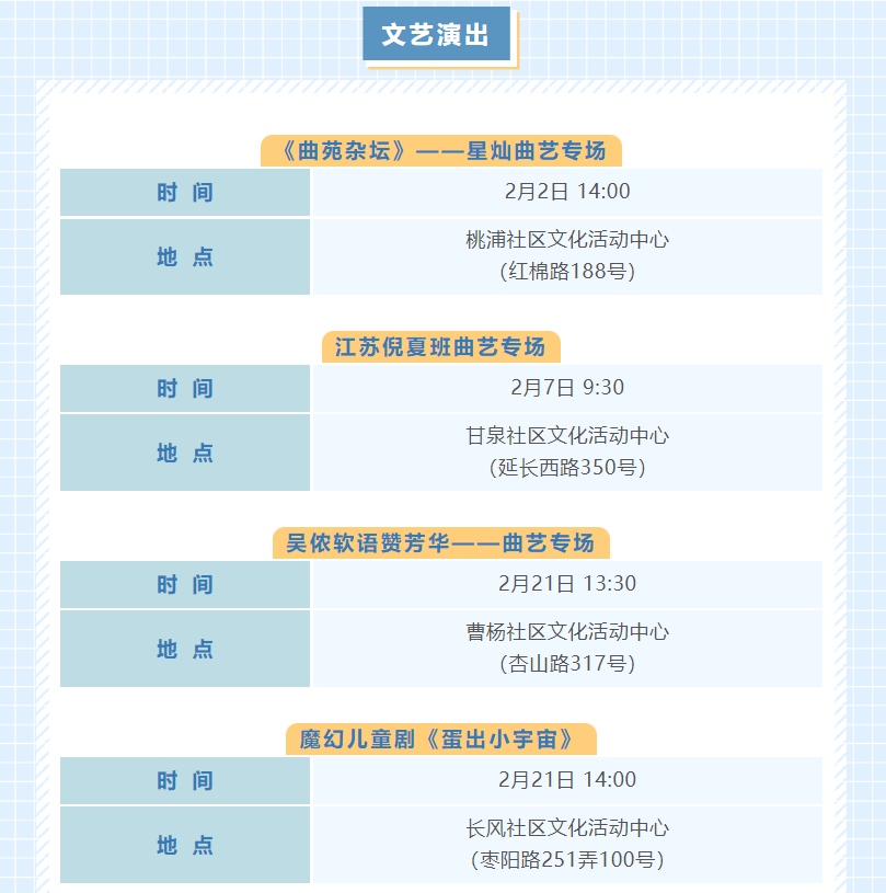 普陀区2月文化配送活动(市级配送)预告来啦!