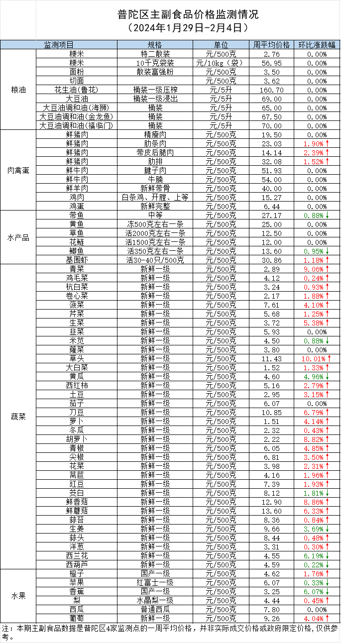 普陀区主副食品价格监测情况 (2024年2月5日)