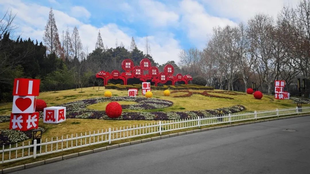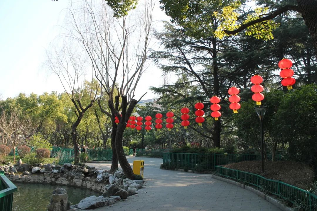 张灯结彩共迎新年,各公园门口都挂上了红灯笼或者小红旗,部分公园在花坛上、道路上进行了年味小品的布置,组成了一幅幅让人眼前一亮、年味十足的图画。让我们一起走进公园,身临其境,共同感受这浓厚的节日氛围吧!