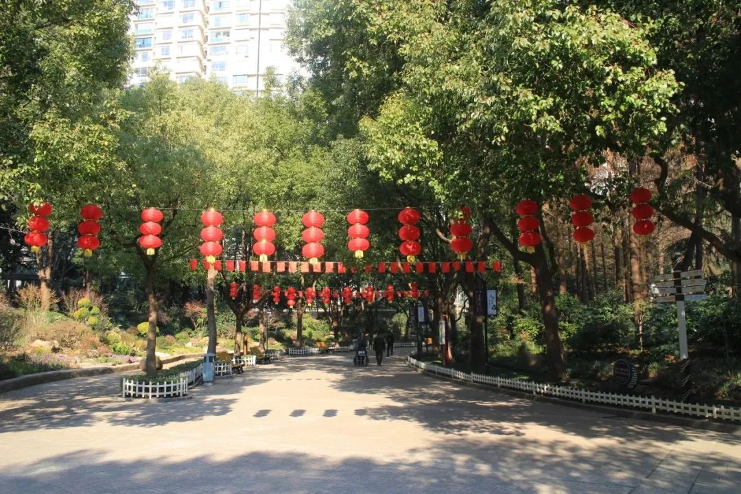 普陀区的各个社区公园通过各种年味小品的打造,灯笼、彩旗的悬挂等表达对新年的美好祝愿,让人们感受到新年的喜庆氛围。