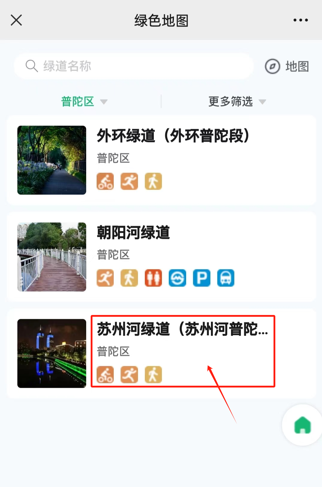 来源: 绿色上海好消息!市民游客现在可以通过“绿色地图”查找附近的城市公园、特色道路及园艺中心等信息啦!除此之外,还能对“果园类型”,“绿道设施”,“古树之最”等标签进行筛选,打开身边的“绿色空间”,实现一键导航、打卡等功能,了解“最新活动”,解锁“公园+”给市民游客带来的新体验……普陀居民们,快打开“绿色地图”,走出家门,拥抱自然吧!