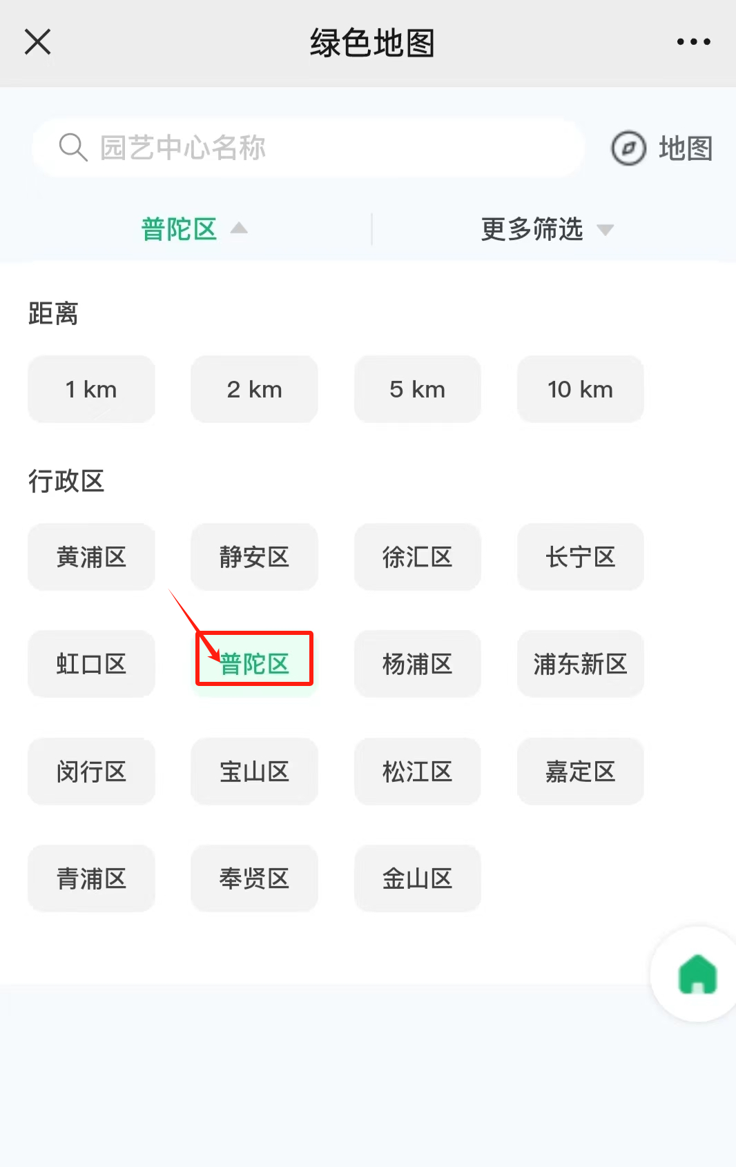 例如,如果你想查找位于普陀区的园艺中心,可以点击“园艺中心”,再选择“普陀区”。
