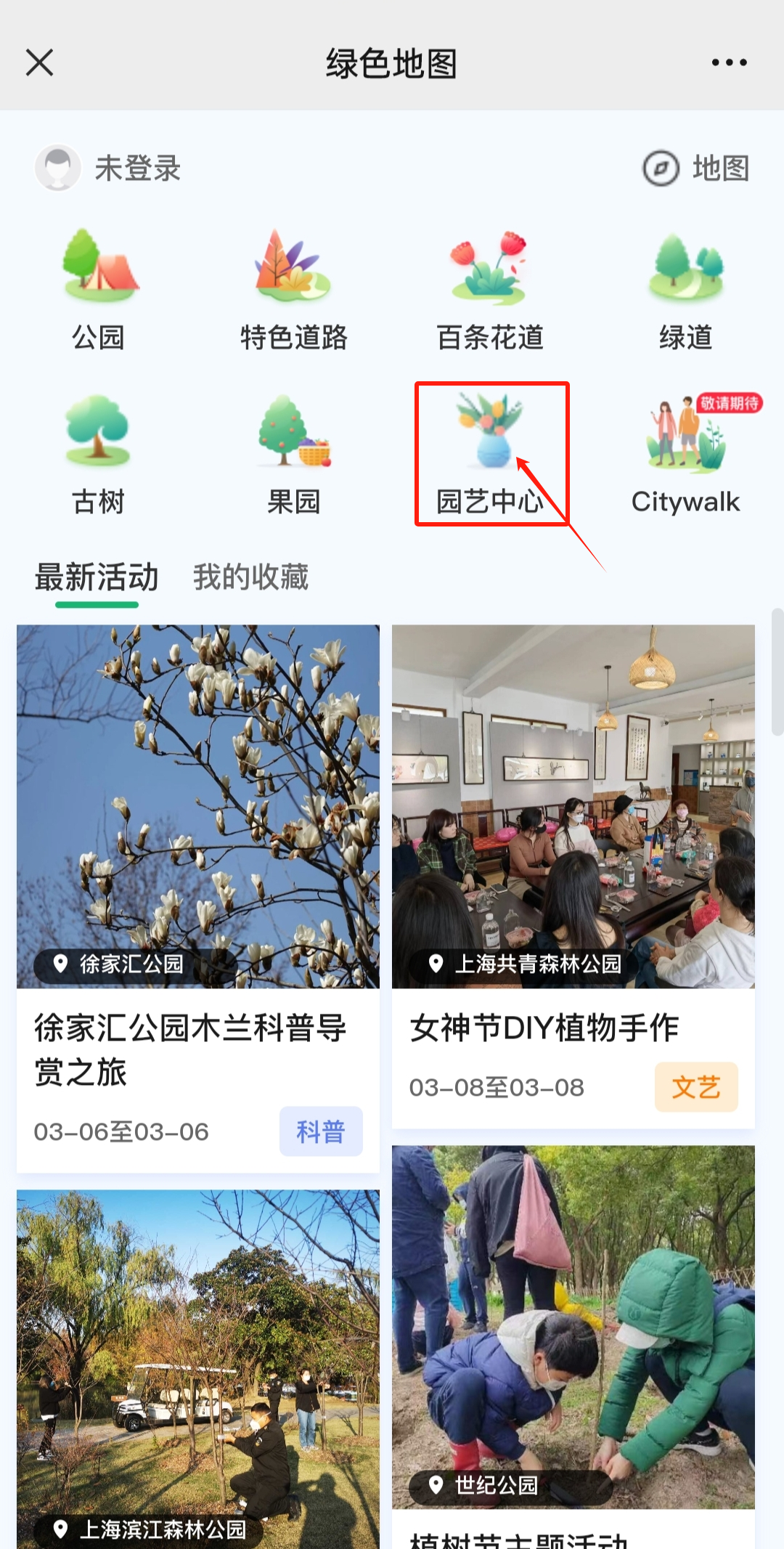 第二步:在“绿色地图”中,你可一键查询附近的绿道、花道、花园和园艺中心等,了解“最新活动”!