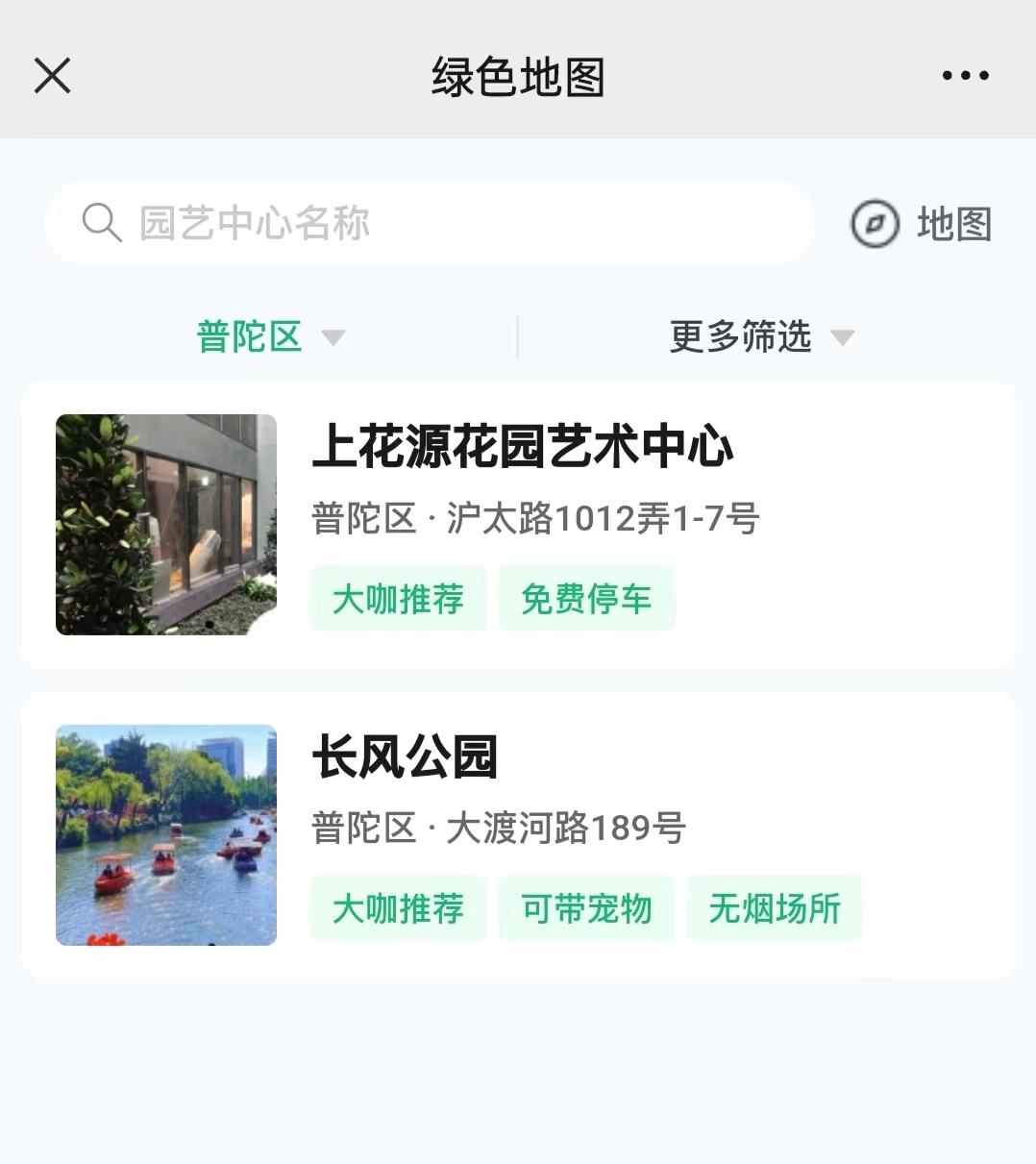 “绿色地图”上线啦!一键查询普陀的园艺中心、花道、公园... 2024年03月06日