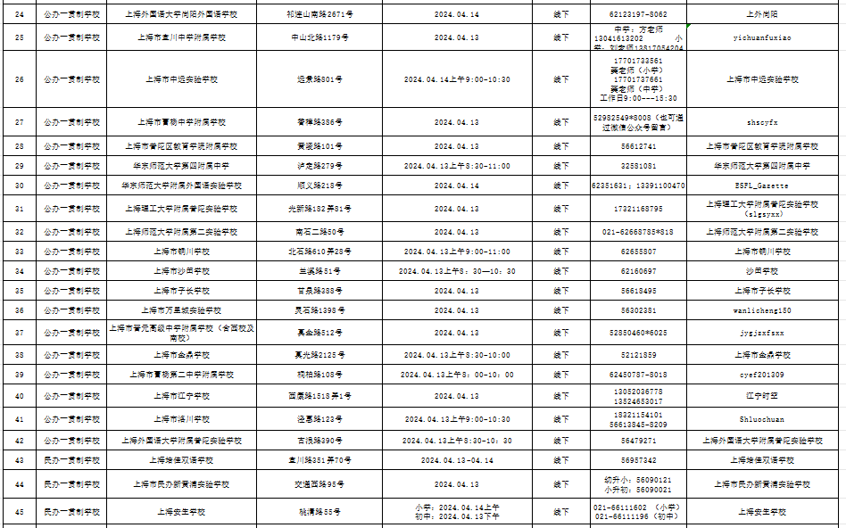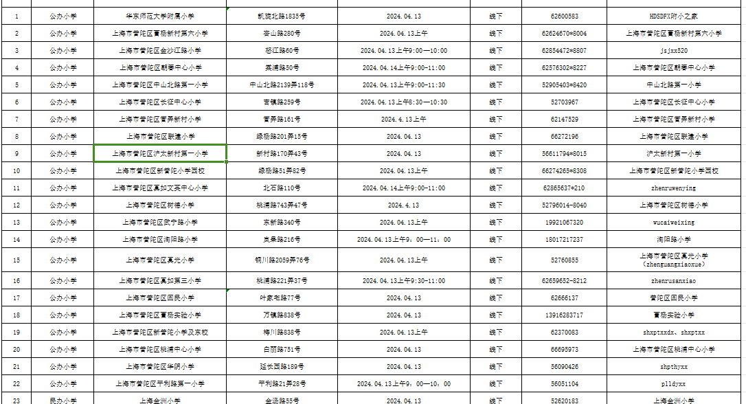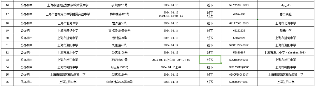 2024普陀区义务教育阶段学校校园开放日信息表来啦!