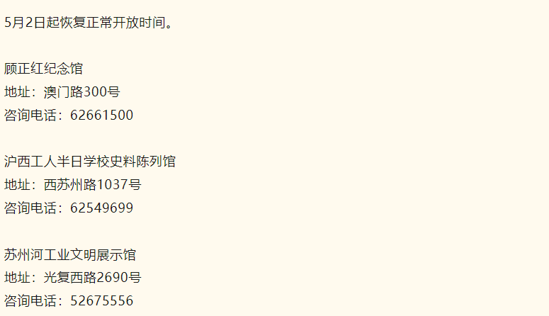 苏州河工业文明展示馆、顾正红纪念馆、沪西工人半日学校史料陈列馆