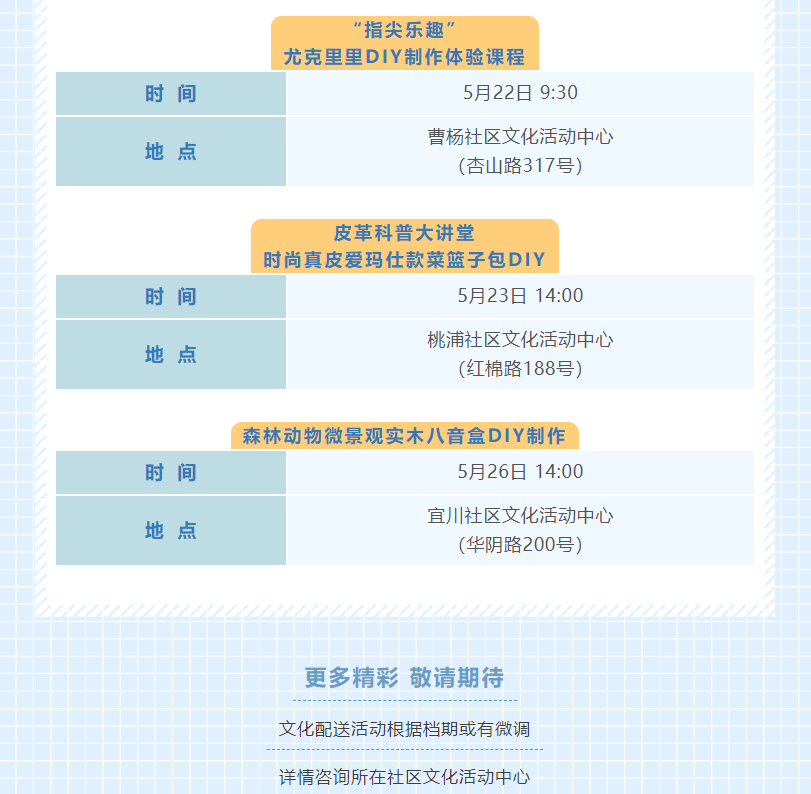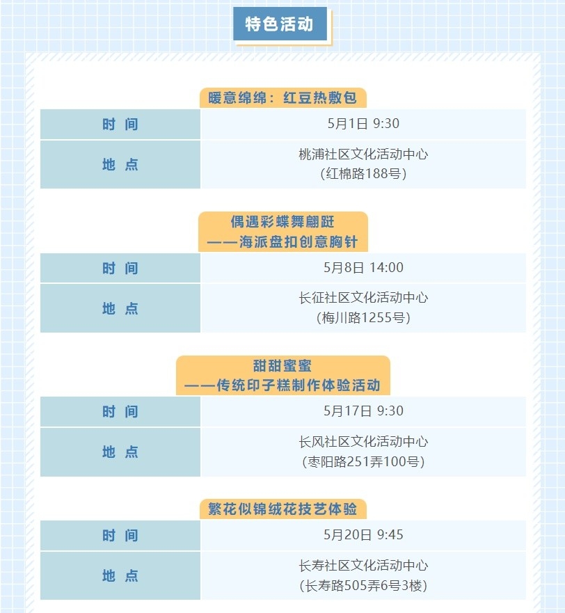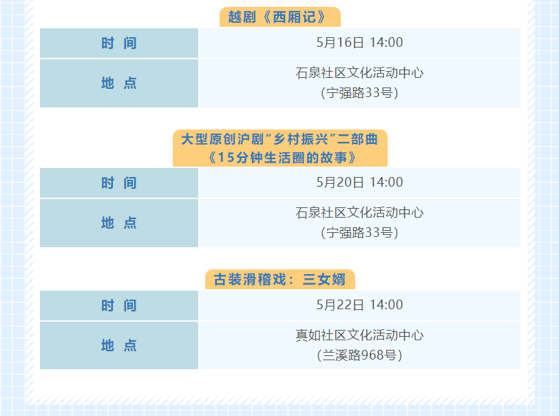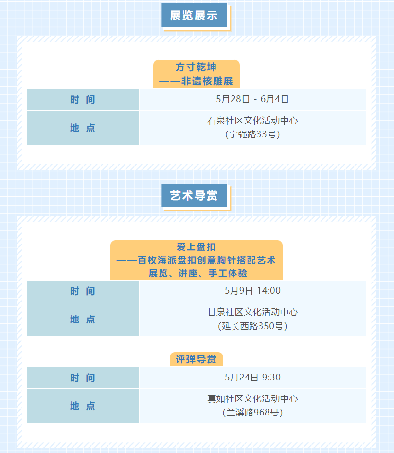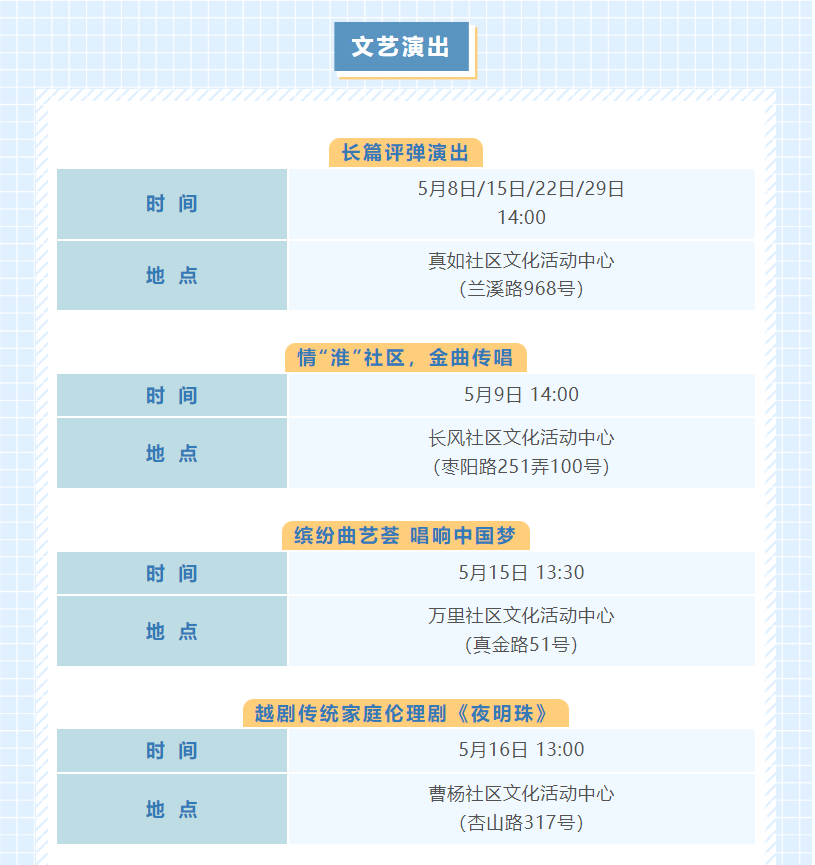 普陀区5月文化配送活动(市级配送)预告来啦!