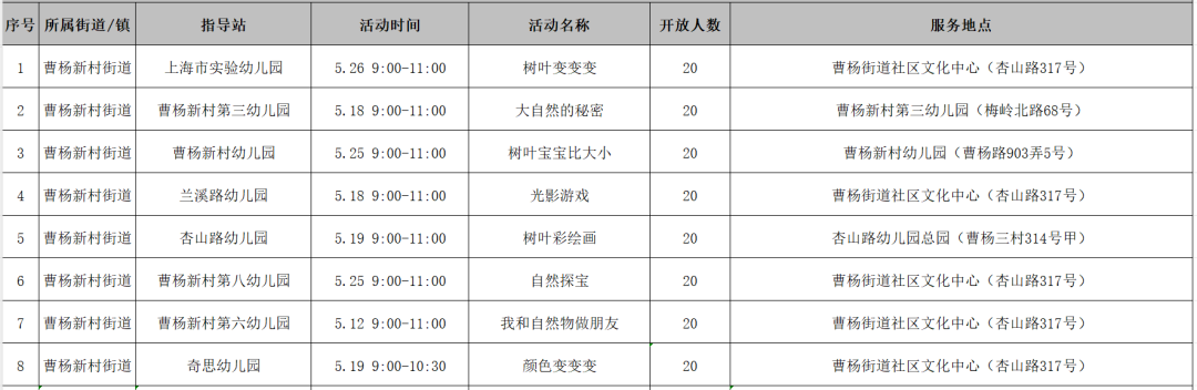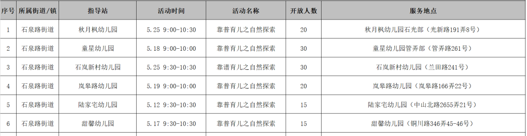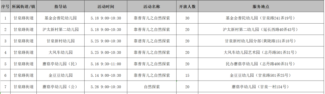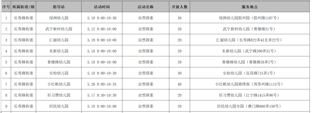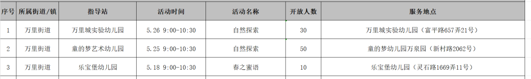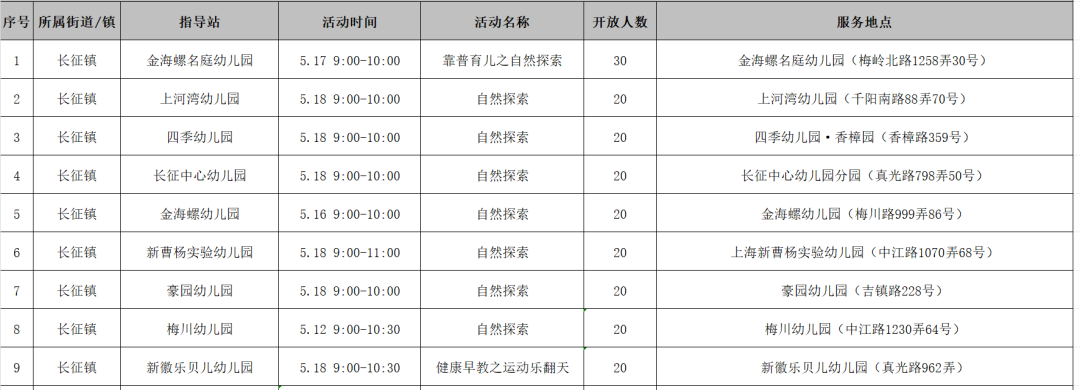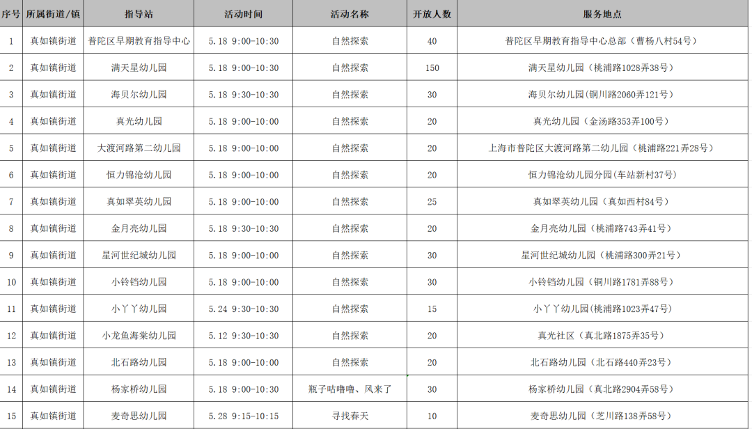 来源: 上海普陀5月起,普陀区各早期教育指导站将以“科学育儿——自然探索”为主题,在全区10个街镇的公(民)办幼儿园内开展亲子游戏活动,面向辖区内3岁以下婴幼儿家庭提供线下科学育儿指导免费公益服务。