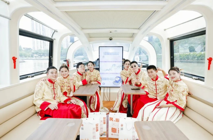 来源: 上海普陀作为普陀区半马苏河重要的文化品牌,苏河婚典创立于2023年,成为展示普陀城市更新和中华婚俗文化的新名片。2023年普陀区举办的首届“苏河婚典”,以“情牵半马苏河 共享花好月圆”为主题, 融合了新人苏河告白、集体中式婚礼、婚姻文化特展、苏河游览等众多元素,将传统文化与现代文明结合,展现苏河百姓幸福实景,助力普陀“半马苏河”经济文化高质量发展。