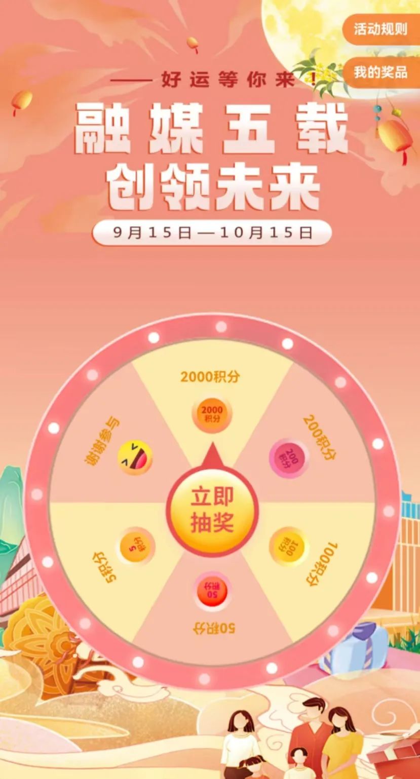 来源: 上海普陀各位市民朋友们,上海普陀区融媒体中心 成立 五周年啦!为分享这份喜悦 同时喜迎中秋与国庆双节的到来,普陀区融媒体中心将在 “上海普陀”客户端举办线上活动,更有积分抽奖活动等你来哦!
