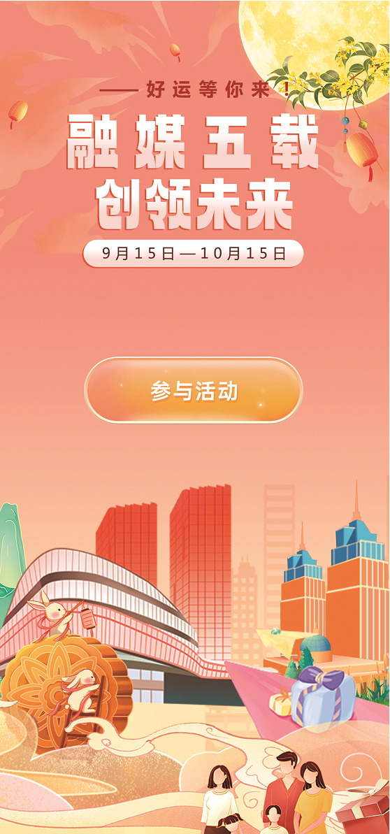 点击“首页”,选择【融媒五载 创领未来】,即可进入活动页面