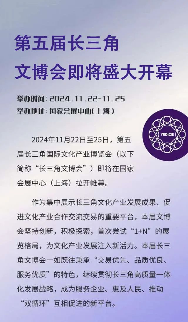 普陀等你来!第五届长三角文博会将于11月22日至25日举办,快来预约观展! 2024年11月07日