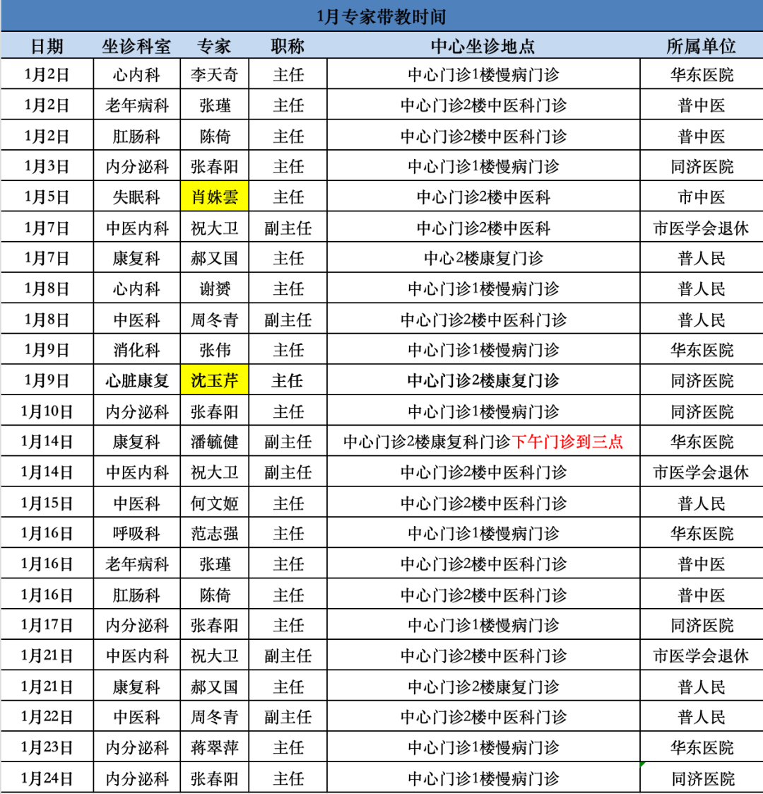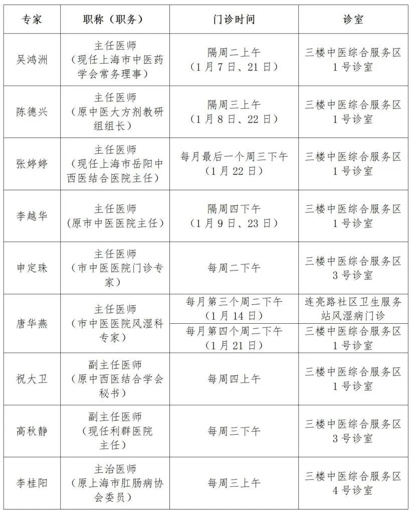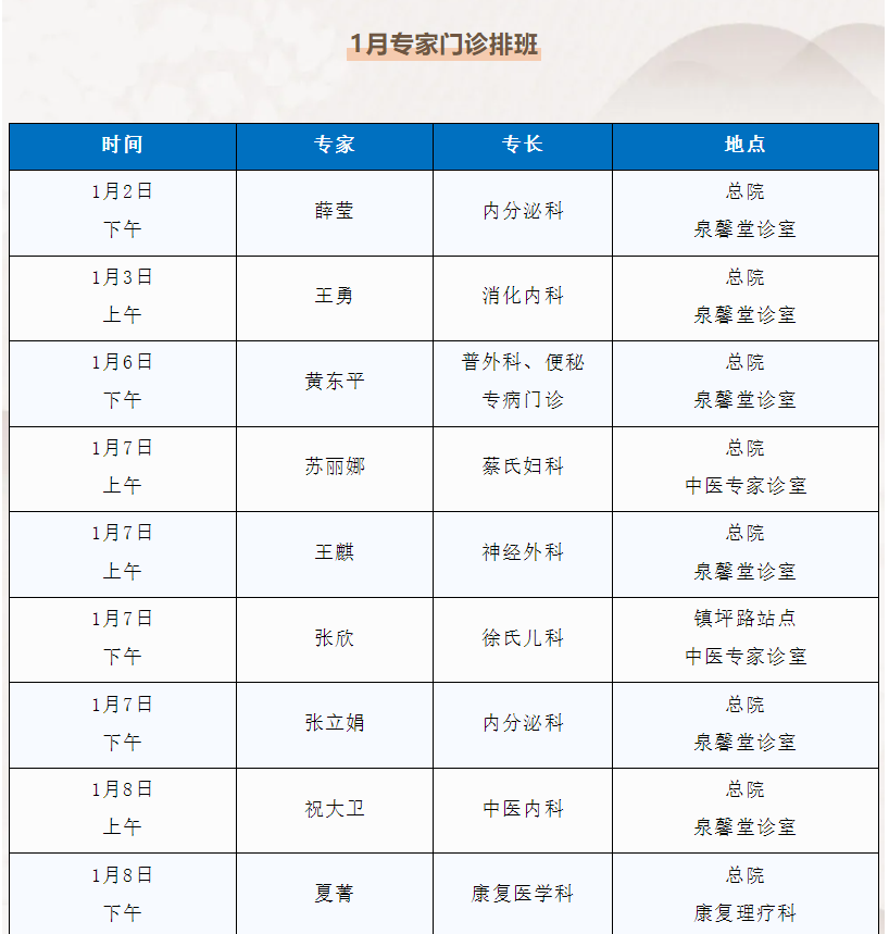 “家门口”就能看名医!普陀2025年1月专家门诊安排来啦 2025年01月02日