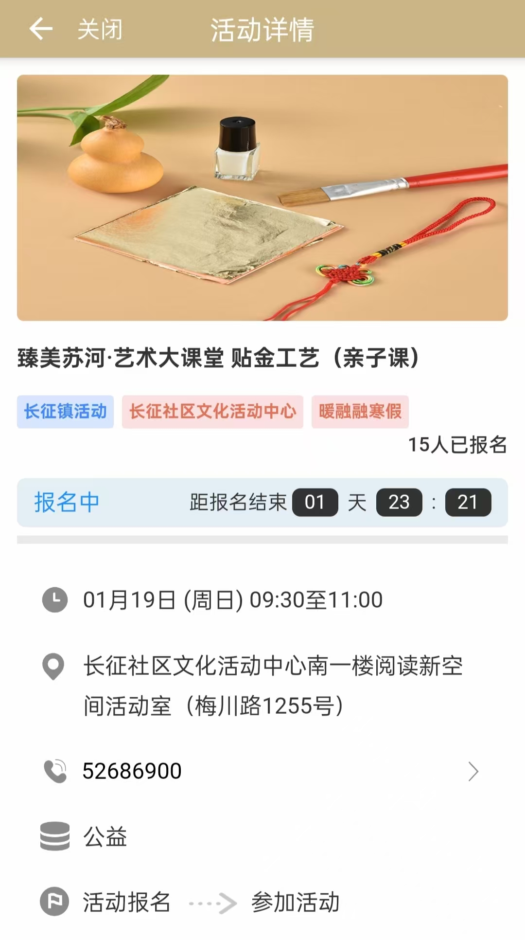周末去哪儿?亲子读书会、贴金工艺课堂…缤纷活动在普陀等你参加!(1月16日更新) 2025年01月16日