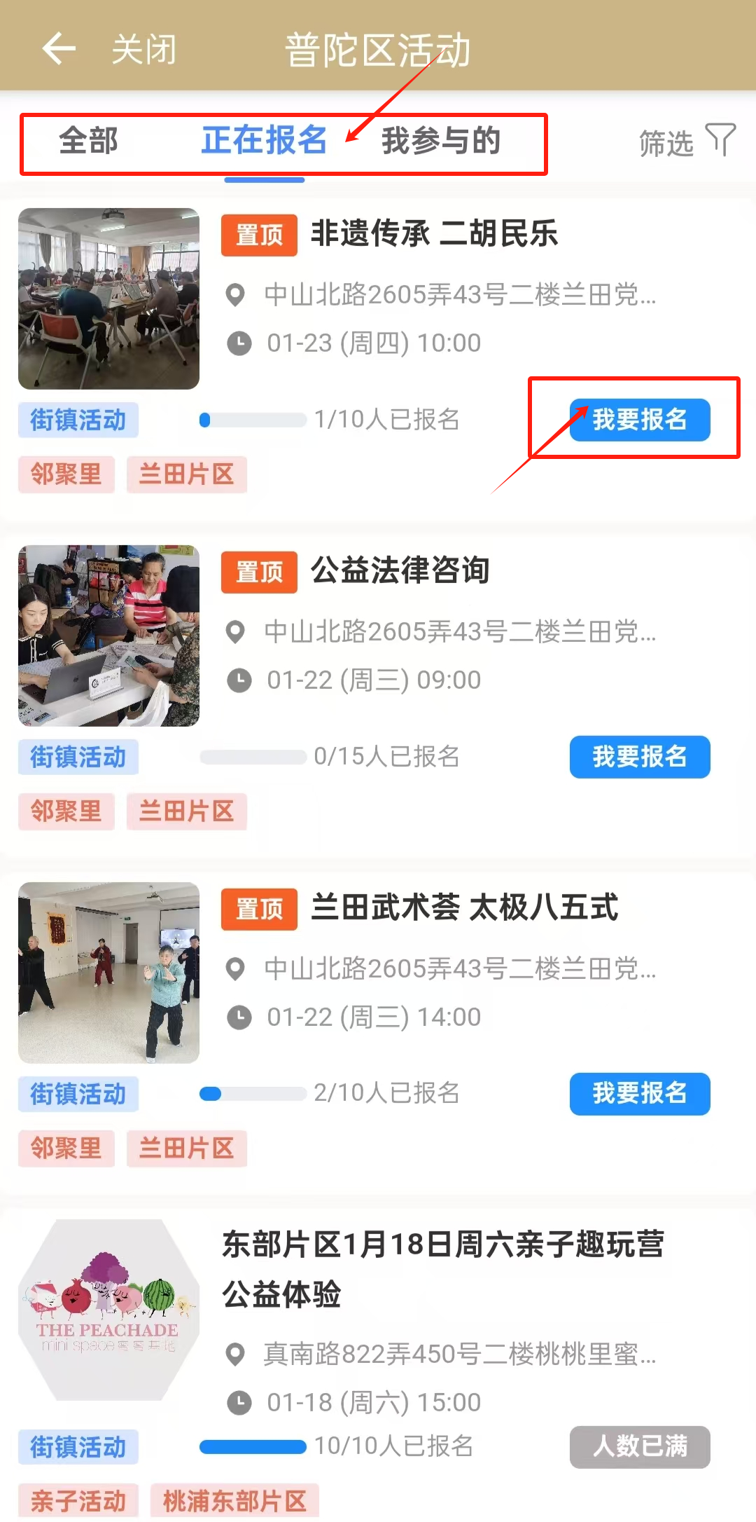 想参加活动,却不知道去哪儿报名?“随申办”普陀旗舰店早就为你准备好了一大波“缤纷活动”,只等你参加!