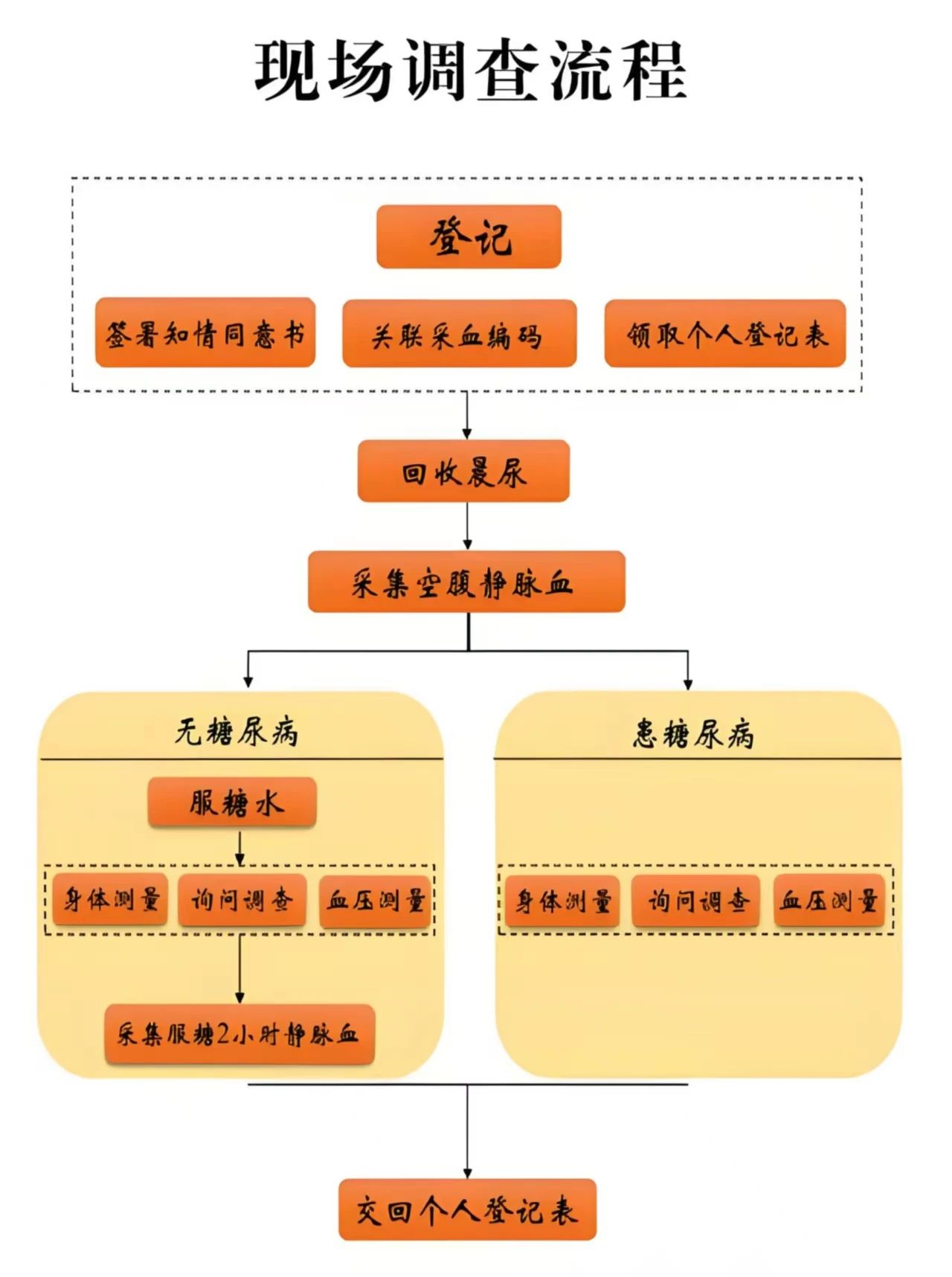 若您被选为本次调查对象,工作人员将尽快与您联系。以下是调查流程说明,恳请您配合工作人员完成调查。您的每一份反馈不仅为完善区域健康政策提供科学依据,也将帮助您更全面地了解自身健康状况,助力疾病早防早治。
