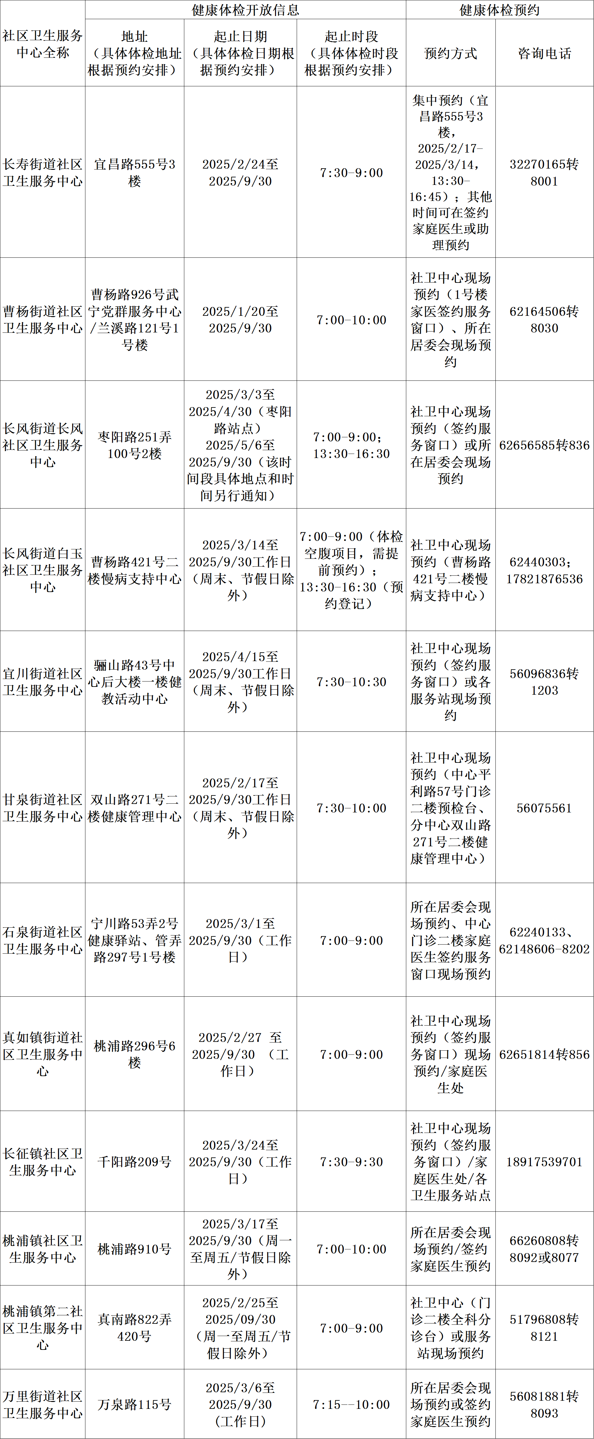 上海65岁及以上老年人免费健康体检服务信息来啦!(附普陀区健康体检开放信息一览) 2025年02月28日