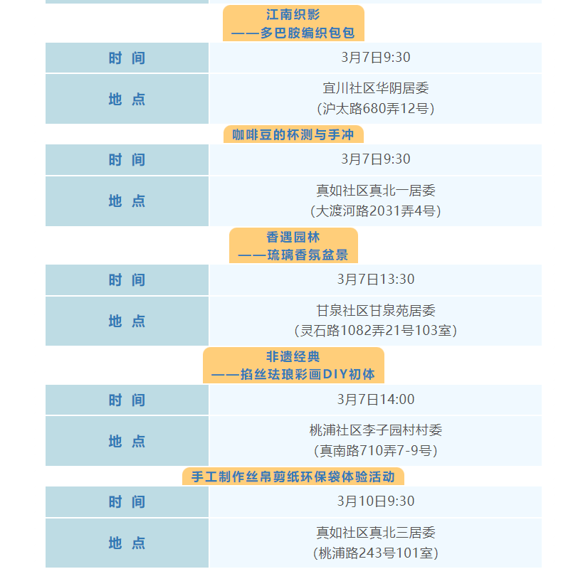 普陀区3月文化配送活动(区级配送)预告请查收!