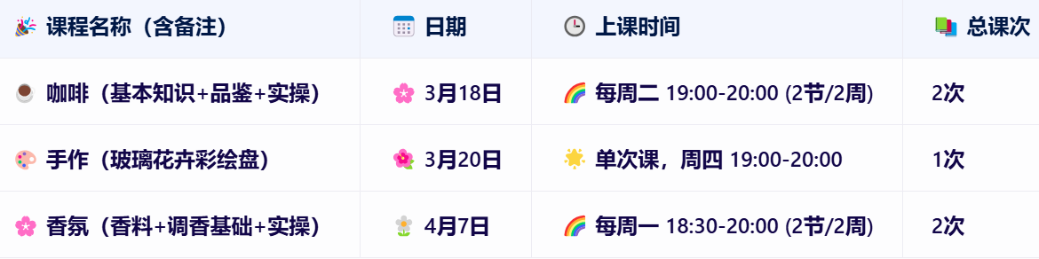 5.报名成功的学员请准时参加活动,如有事不能前来,务必提前2天于班级群内请假。如无故缺席2次,将取消后续活动的报名资格。