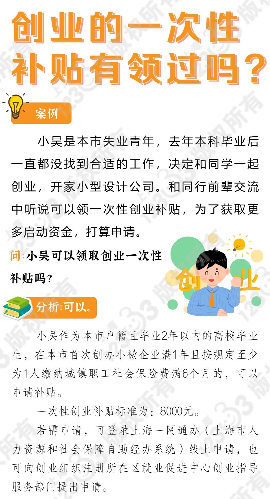 创业的一次性补贴有领过吗?(附普陀区首次创业一次性补贴政策咨询方式)