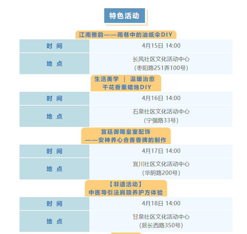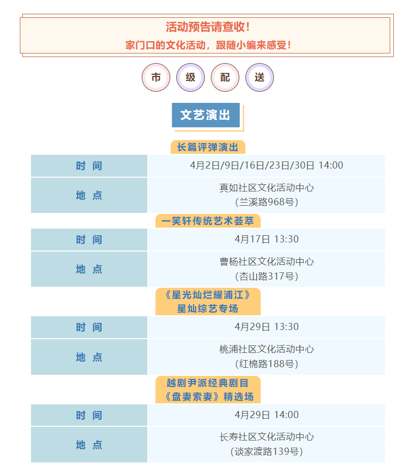 普陀区4月文化配送活动(市级配送)预告来啦!