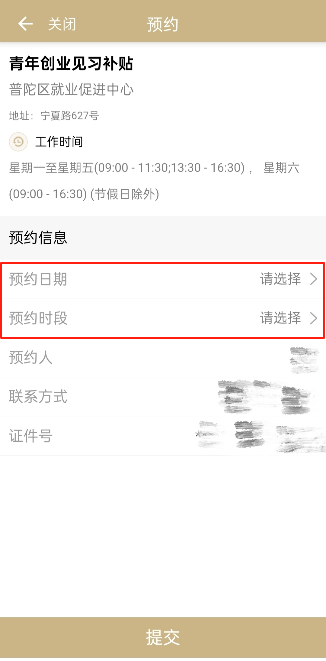 第四步:下拉选择您要预约的日期及时间段,确认预约信息正确后点击“提交”。