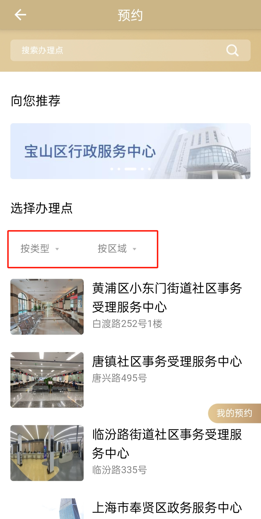 也可以点击“按区域”,选择“普陀区”,选择相应机构。