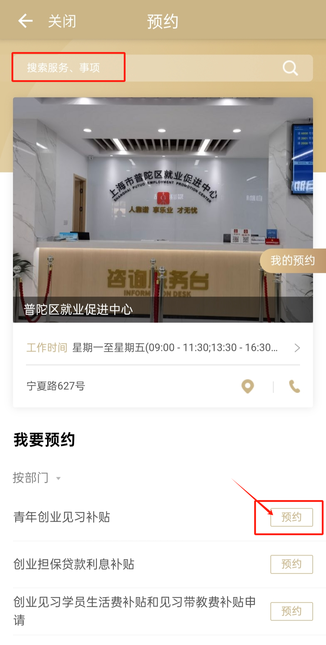 第三步:在【我要预约】中选择业务事项,或直接在上方搜索栏输入您要办理的业务事项,点击“预约”。