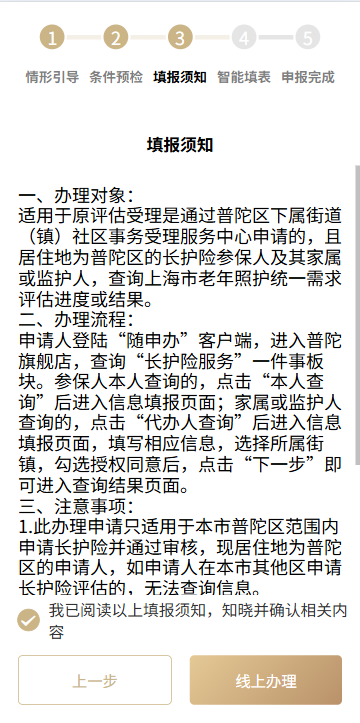 (三)阅读填报须知,点击“线上办理”进入下一环节