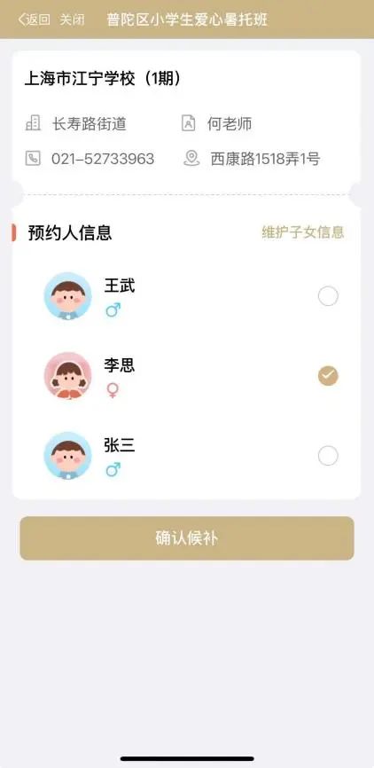 2. 勾选需要候补的子女,点击“确认候补”即可。