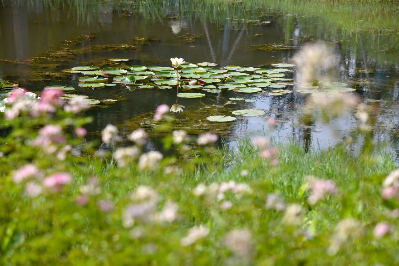 启动林公园的睡莲池独具特色,池水清澈见底,睡莲白色的根茎在水中舒展,清晰可见。岸边点缀的几株“夏花”,粉紫的花瓣偶尔飘落池中,与睡莲相映成趣,构成了一幅灵动的画面,随手一拍都如“莫奈花园”般唯美。